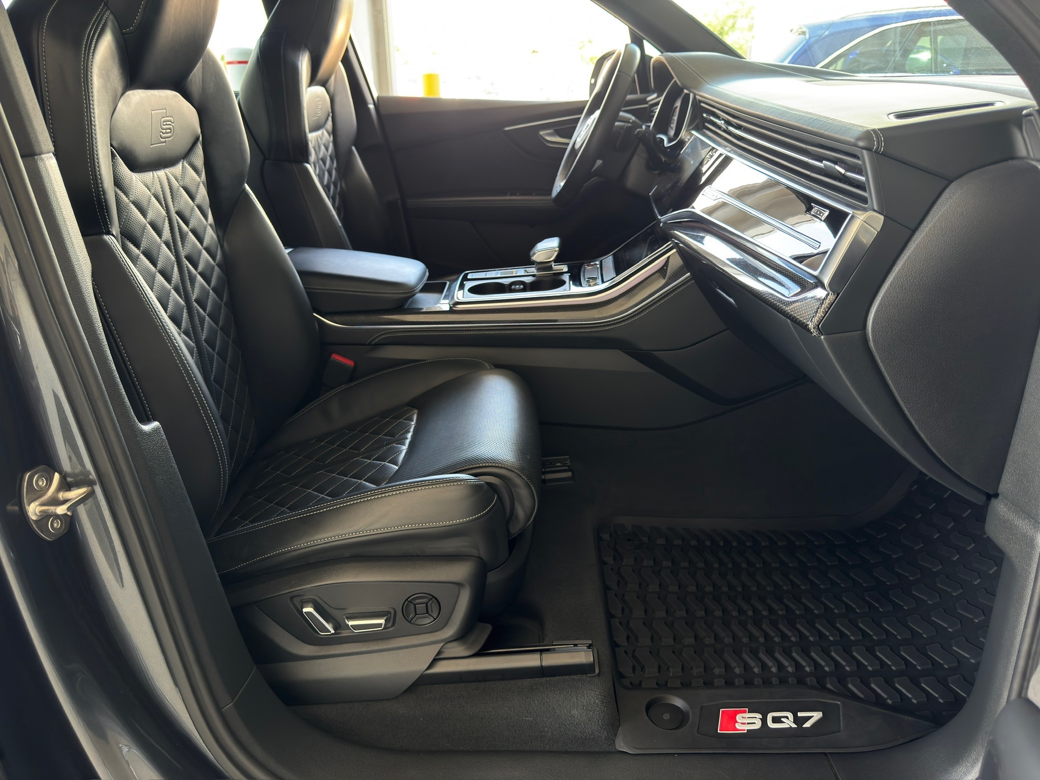 Daytona Gray Pearl 2022 Audi SQ7 Premium Plus quattro quattro 8-Speed Automatic with Tiptronic 4.0L V8 Turbocharged DOHC 32V LEV3-ULEV125 500hp Black Optic Exterior Kit, Contour/Ambient LED Interior Lighting Package, Driver & Passenger Front Seats w/Ventilation, Heated Rear Seats, Leather Package - Upper & Lower, Navigation system: Audi MMI Navigation plus with Touch Response, SQ7 Black Optic Package, SQ7 Executive Package, Sunshades for Rear Door Side Windows & Tailgate, Wheels: 21" Audi Sport