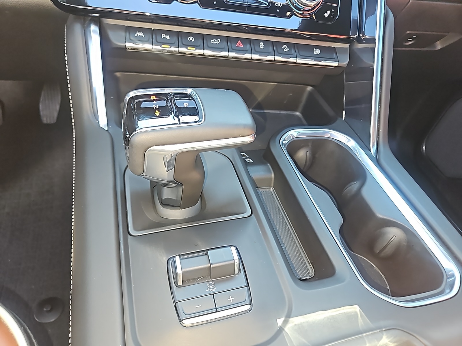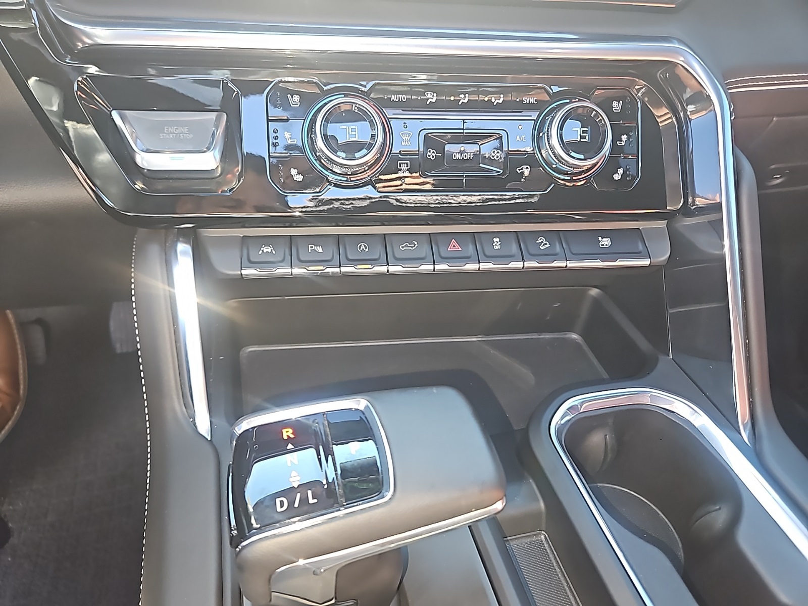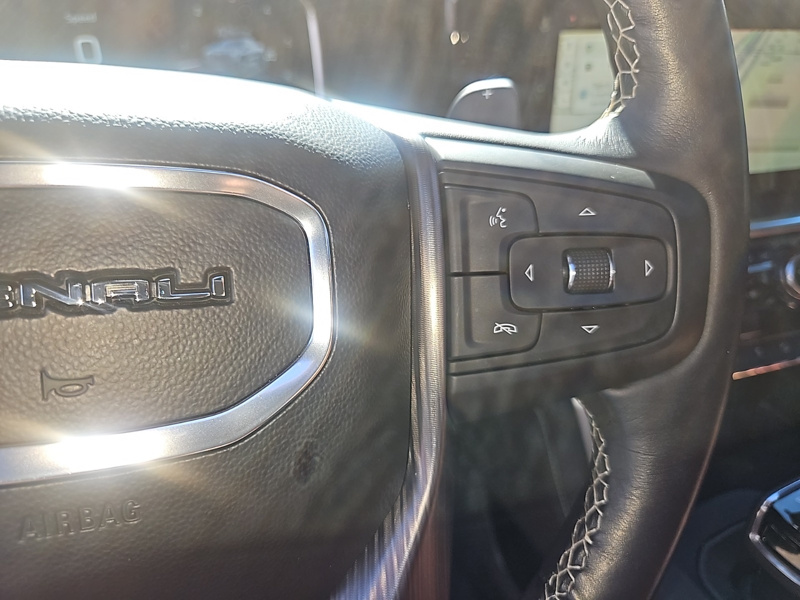 ose Premium Series w/12-Speaker System, Chrome Recovery Hooks, Color-Keyed Carpeting Floor Covering, Compass, Deep-Tinted Glass, Electric Rear-Window Defogger, Electrical Steering Column Lock, Floor-Mounted Center Console, Front Rainsensing Wipers, GMC Connected Access Capable, HD Surround Vision, Heated 2nd Row Outboard Seats, Heated Driver & Front Outboard Passenger Seating, Heavy-Duty Air Filter, Hill Descent Control, Hitch Guidance w/Hitch View, In-Vehicle Trailering App, Integrated Trailer Brake Controller, Keyless Open & Start, LED Cargo Area Lighting, Multicolor 15" Diagonal Head-Up Display, MultiPro Audio System by Kicker (LPO), OnStar & GMC Connected Services Capable, Perimeter Lighting, Power Door Locks, Power Front Passenger Windows w/Express Up/Down, Power Front Windows w/Driver Express Up/Down, Power Rake & Telescoping Steering Column, Power Rear Windows w/Express Down, Power Sliding Rear Window w/Rear Defogger, Power Sunroof, Push Button Start, Rear Cross Traffic Braking, Rear Pedestrian Detection, Rear Wheelhouse Liners, Remote Vehicle Starter System, SiriusXM w/360L, Spray-On Pickup Bed Liner w/Denali Logo, Steering Wheel Audio Controls, Theft Deterrent System (Unauthorized Entry), Trailer Camera Provisions, Trailer Side Blind Zone Alert, Trailer Tire Pressure Monitor System, Ultrasonic Front & Rear Park Assist, Universal Home Remote, Vader Chrome Header w/Signature Denali Grille, Ventilated Driver & Front Passenger Seats, Wi-Fi Hotspot Capable, Wireless Charging, and Wireless Phone Projection), Trailering Package (Hitch Guidance), 10-Speed Automatic, 4WD, Alpine Umber Leather, 12 Speakers, 16-Way Power Driver Seat Adjuster w/Lumbar, 16-Way Power Passenger Seat Adjuster w/Lumbar, 170 Amp Alternator, 3.23 Rear Axle Ratio, 4-Wheel Disc Brakes, ABS brakes, Adaptive suspension, Air Conditioning, Alloy wheels, AM/FM radio, Apple CarPlay/Android Auto, Auto High-beam Headlights, Auto-dimming door mirrors, Auto-dimming Rear-View mirror, Automatic Emergency Braking, Automatic temperature control, Brake assist, Buckle to Drive, Bumpers: body-color, Delay-off headlights, Denali Premium Suspension w/Adaptive Ride Control, Driver door bin, Driver Memory, Driver vanity mirror, Dual front impact airbags, Dual front side impact airbags, Electronic Stability Control, Emergency communication system: OnStar and GMC connected services capable, Following Distance Indicator, Forward Collision Alert, Front anti-roll bar, Front Bucket Seats, Front Center Armrest, Front dual zone A/C, Front fog lights, Front License Plate Kit, Front Pedestrian Braking, Front reading lights, Front wheel independent suspension, Full Grain Leather Seat Trim, Fully automatic headlights, Garage door transmitter, Genuine wood console insert, Genuine wood dashboard insert, Genuine wood door panel insert, Heads-Up Display, Heated door mirrors, Heated front seats, Heated rear seats, Heated steering wheel, Illuminated entry, IntelliBeam Automatic High Beam On/Off, Lane Keep Assist w/Lane Departure Warning, Low tire pressure warning, Memory seat, Navigation System, Not Equipped w/Steering Column Lock, Occupant sensing airbag, Outside temperature display, Overhead airbag, Overhead console, Panic alarm, Passenger door bin, Passenger vanity mirror, Power door mirrors, Power driver seat, Power moonroof, Power passenger seat, Power steering, Power windows, Premium audio system: GMC Infotainment System, Radio data system, Radio: Premium GMC Infotainment Audio System, Rain sensi