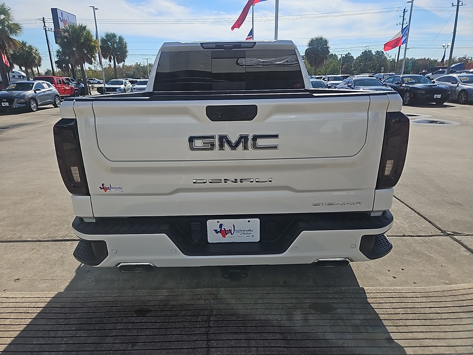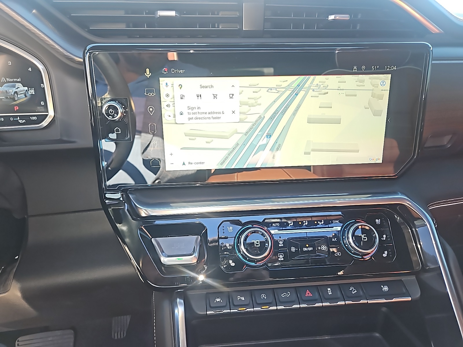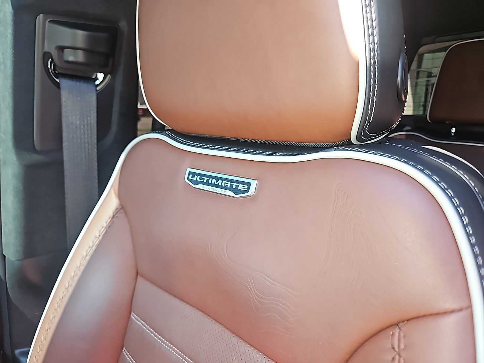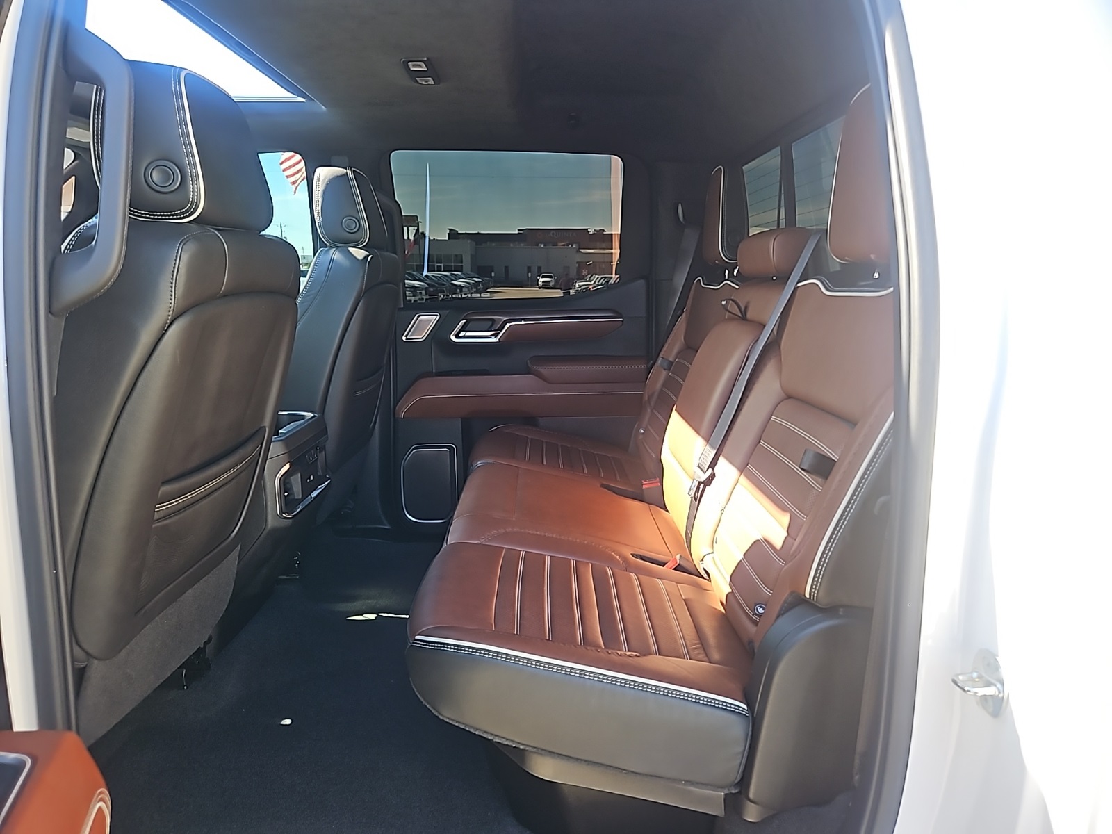 ose Premium Series w/12-Speaker System, Chrome Recovery Hooks, Color-Keyed Carpeting Floor Covering, Compass, Deep-Tinted Glass, Electric Rear-Window Defogger, Electrical Steering Column Lock, Floor-Mounted Center Console, Front Rainsensing Wipers, GMC Connected Access Capable, HD Surround Vision, Heated 2nd Row Outboard Seats, Heated Driver & Front Outboard Passenger Seating, Heavy-Duty Air Filter, Hill Descent Control, Hitch Guidance w/Hitch View, In-Vehicle Trailering App, Integrated Trailer Brake Controller, Keyless Open & Start, LED Cargo Area Lighting, Multicolor 15" Diagonal Head-Up Display, MultiPro Audio System by Kicker (LPO), OnStar & GMC Connected Services Capable, Perimeter Lighting, Power Door Locks, Power Front Passenger Windows w/Express Up/Down, Power Front Windows w/Driver Express Up/Down, Power Rake & Telescoping Steering Column, Power Rear Windows w/Express Down, Power Sliding Rear Window w/Rear Defogger, Power Sunroof, Push Button Start, Rear Cross Traffic Braking, Rear Pedestrian Detection, Rear Wheelhouse Liners, Remote Vehicle Starter System, SiriusXM w/360L, Spray-On Pickup Bed Liner w/Denali Logo, Steering Wheel Audio Controls, Theft Deterrent System (Unauthorized Entry), Trailer Camera Provisions, Trailer Side Blind Zone Alert, Trailer Tire Pressure Monitor System, Ultrasonic Front & Rear Park Assist, Universal Home Remote, Vader Chrome Header w/Signature Denali Grille, Ventilated Driver & Front Passenger Seats, Wi-Fi Hotspot Capable, Wireless Charging, and Wireless Phone Projection), Trailering Package (Hitch Guidance), 10-Speed Automatic, 4WD, Alpine Umber Leather, 12 Speakers, 16-Way Power Driver Seat Adjuster w/Lumbar, 16-Way Power Passenger Seat Adjuster w/Lumbar, 170 Amp Alternator, 3.23 Rear Axle Ratio, 4-Wheel Disc Brakes, ABS brakes, Adaptive suspension, Air Conditioning, Alloy wheels, AM/FM radio, Apple CarPlay/Android Auto, Auto High-beam Headlights, Auto-dimming door mirrors, Auto-dimming Rear-View mirror, Automatic Emergency Braking, Automatic temperature control, Brake assist, Buckle to Drive, Bumpers: body-color, Delay-off headlights, Denali Premium Suspension w/Adaptive Ride Control, Driver door bin, Driver Memory, Driver vanity mirror, Dual front impact airbags, Dual front side impact airbags, Electronic Stability Control, Emergency communication system: OnStar and GMC connected services capable, Following Distance Indicator, Forward Collision Alert, Front anti-roll bar, Front Bucket Seats, Front Center Armrest, Front dual zone A/C, Front fog lights, Front License Plate Kit, Front Pedestrian Braking, Front reading lights, Front wheel independent suspension, Full Grain Leather Seat Trim, Fully automatic headlights, Garage door transmitter, Genuine wood console insert, Genuine wood dashboard insert, Genuine wood door panel insert, Heads-Up Display, Heated door mirrors, Heated front seats, Heated rear seats, Heated steering wheel, Illuminated entry, IntelliBeam Automatic High Beam On/Off, Lane Keep Assist w/Lane Departure Warning, Low tire pressure warning, Memory seat, Navigation System, Not Equipped w/Steering Column Lock, Occupant sensing airbag, Outside temperature display, Overhead airbag, Overhead console, Panic alarm, Passenger door bin, Passenger vanity mirror, Power door mirrors, Power driver seat, Power moonroof, Power passenger seat, Power steering, Power windows, Premium audio system: GMC Infotainment System, Radio data system, Radio: Premium GMC Infotainment Audio System, Rain sensi