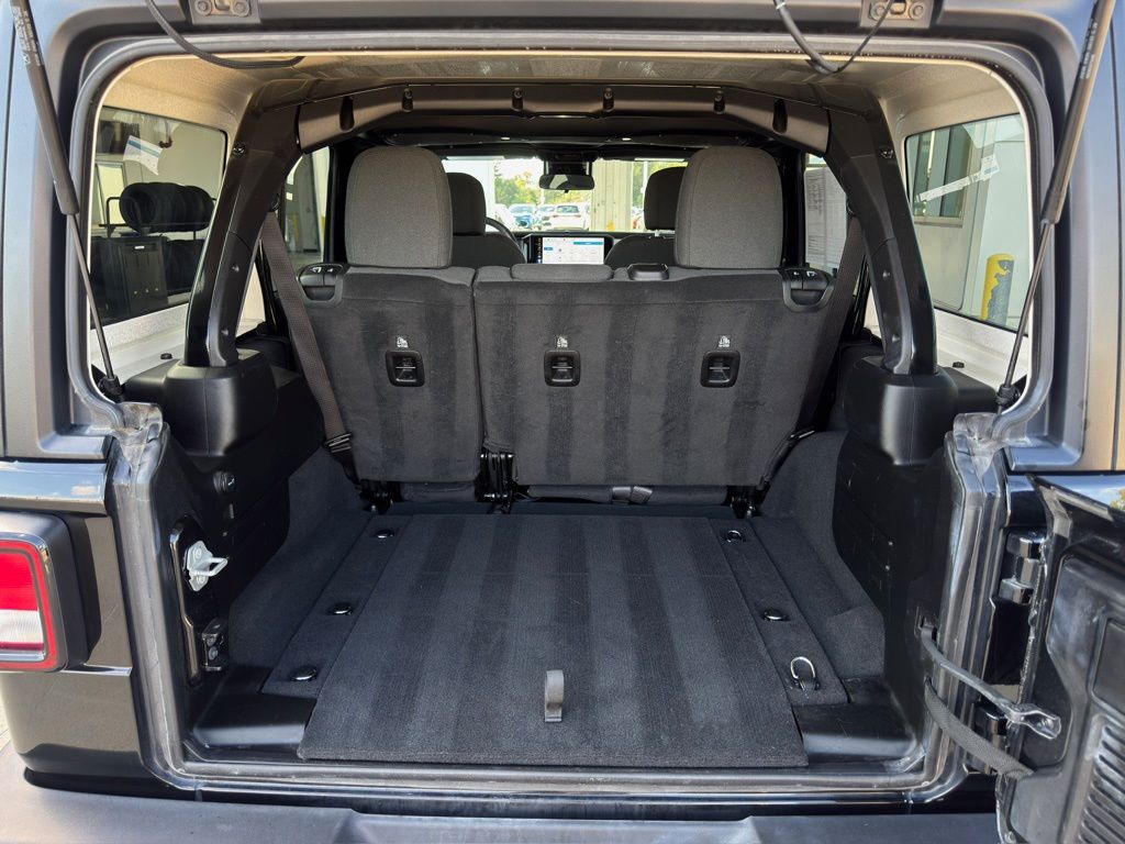 off headlights, Driver door bin, Driver vanity mirror, Dual front impact airbags, Dual front side impact airbags, Electronic Stability Control, Enhanced Adaptive Cruise Control, Freedom Panel Storage Bag, Front 1-Touch Down Power Windows, Front anti-roll bar, Front Bucket Seats, Front Center Armrest w/Storage, Front fog lights, Front reading lights, Full Speed Forward Collision Warning Plus, Integrated roll-over protection, Low tire pressure warning, No Soft Top, Non-Lock Fuel Cap w/o Discriminator, Normal Duty Suspension, Occupant sensing airbag, Outside temperature display, Overhead airbag, ParkView Rear Back-Up Camera, Passenger door bin, Passenger vanity mirror, Power Heated Mirrors, Power steering, Premium Wrapped Steering Wheel, Quick Order Package 22S Sport S, Radio data system, Radio: Uconnect 5 w/12.3" Display, Rear anti-roll bar, Rear reading lights, Rear Window Defroster, Rear Window Wiper/Washer, Remote Keyless Entry, Security Alarm, Speed control, Speed Sensitive Power Locks, Split folding rear seat, Steering wheel mounted audio controls, Stop-Start Dual Battery System, Sun Visors w/Illuminated Vanity Mirrors, Tachometer, Telescoping steering wheel, Tilt steering wheel, Traction control, Trip computer, Variably intermittent wipers, Wheels: 17" x 7.5" Black Steel Styled, Wheels: 17" x 7.5" Gray, 12.3" DISPLAY, POWER WINDOWS, Sport S.