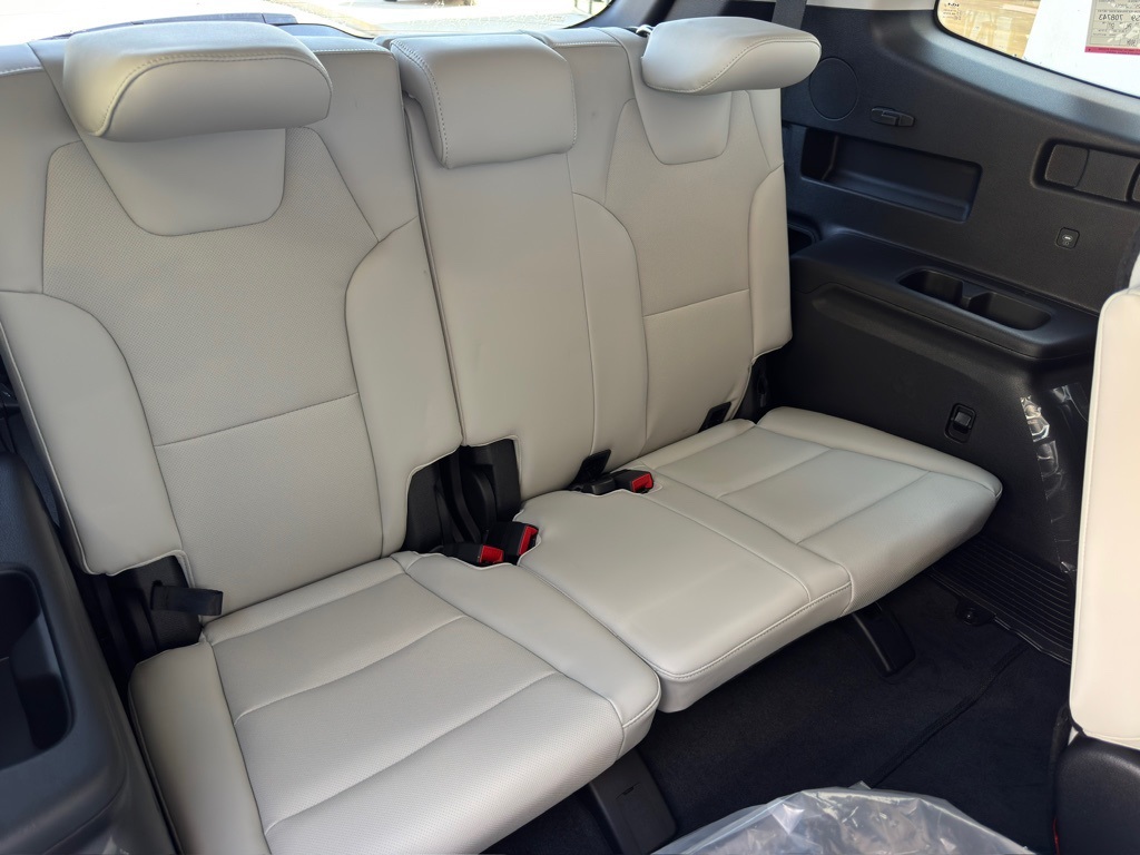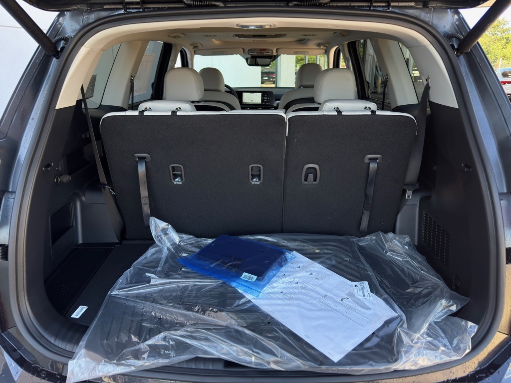 3rd row seats: split-bench, 4-Wheel Disc Brakes, 6 Speakers, ABS brakes, Air Conditioning, Alloy wheels, AM/FM radio: SiriusXM, Apple CarPlay & Android Auto, Auto High-beam Headlights, Automatic temperature control, Brake assist, Bumpers: body-color, Delay-off headlights, Driver door bin, Driver vanity mirror, Dual front impact airbags, Dual front side impact airbags, Electronic Stability Control, Emergency communication system: 911 Connect, Exterior Parking Camera Rear, Four wheel independent suspension, Front anti-roll bar, Front Bucket Seats, Front Center Armrest, Front dual zone A/C, Front reading lights, Fully automatic headlights, Heated door mirrors, Heated Front Bucket Seats, Heated front seats, Illuminated entry, Knee airbag, Leather Shift Knob, Leather steering wheel, Low tire pressure warning, Navigation System, Occupant sensing airbag, Outside temperature display, Overhead airbag, Overhead console, Panic alarm, Passenger door bin, Passenger vanity mirror, Power door mirrors, Power driver seat, Power Liftgate, Power moonroof, Power steering, Power windows, Radio data system, Radio: AM/FM Display Audio System, Rear air conditioning, Rear anti-roll bar, Rear audio controls, Rear reading lights, Rear side impact airbag, Rear window defroster, Rear window wiper, Reclining 3rd row seat, Remote keyless entry, Security system, Speed control, Speed-sensing steering, Split folding rear seat, Spoiler, Steering wheel mounted audio controls, SynTex Synthetic Leather Seat Trim, Tachometer, Telescoping steering wheel, Tilt steering wheel, Traction control, Trip computer, Turn signal indicator mirrors, Variably intermittent wipers, and Wheels: 20" x 7.5" Black Finish.