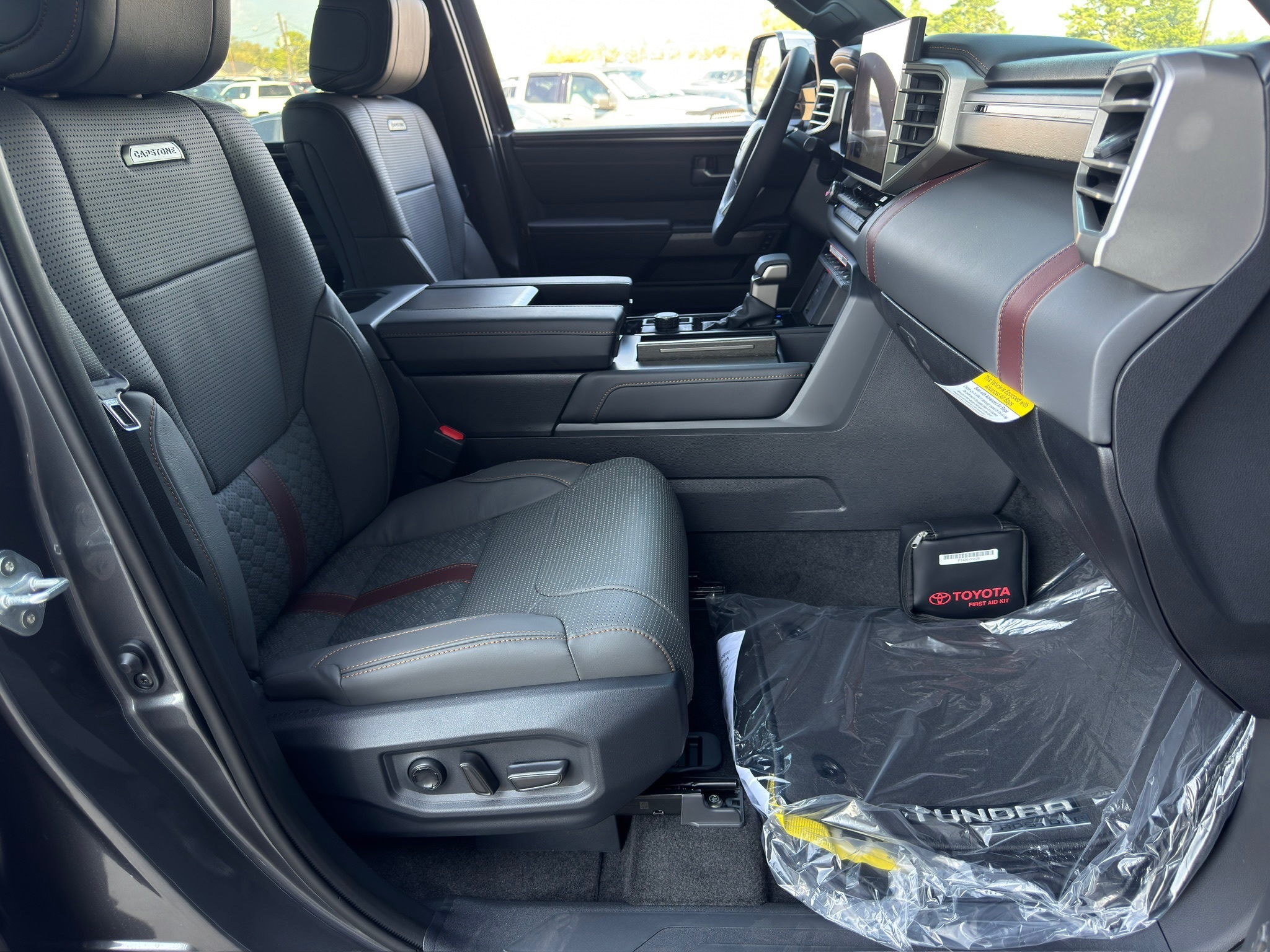 01g3 2026 Toyota Tundra Hybrid Capstone 4WD 10-Speed Automatic 3.4L V6 3.4L V6, ABS brakes, Active Cruise Control, Alloy wheels, Compass, Electronic Stability Control, Front dual zone A/C, Heated door mirrors, Heated front seats, Heated rear seats, Illuminated entry, Low tire pressure warning, Navigation System, Power moonroof, Remote keyless entry, Semi-Aniline Leather Seat Trim, Traction control.
