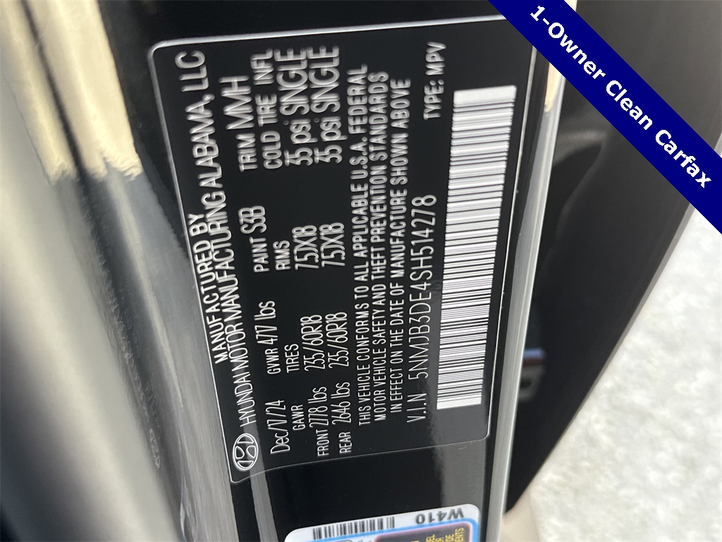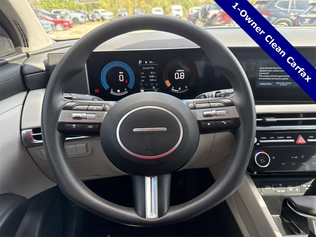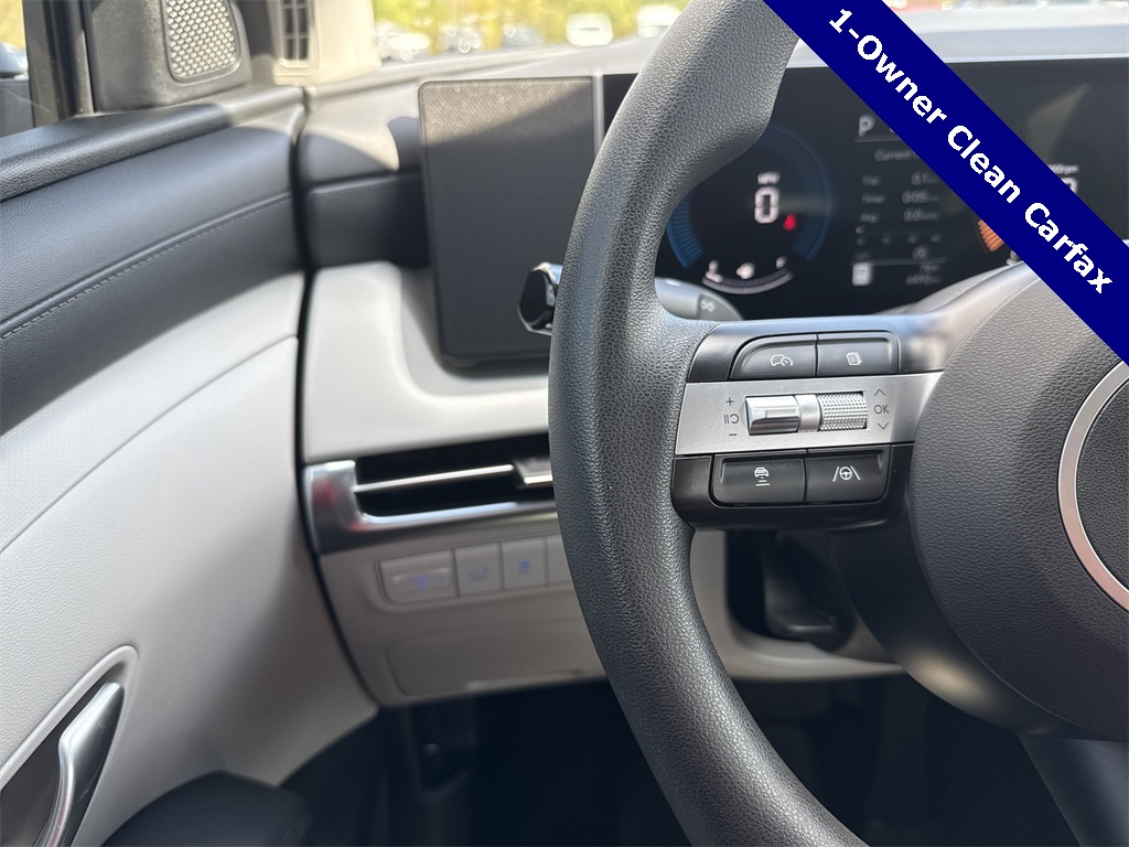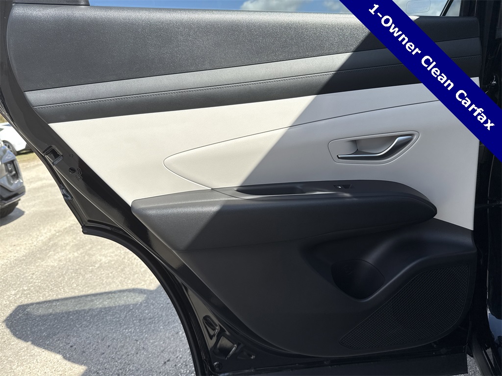 ts, Automatic temperature control, Brake assist, Bumpers: body-color, Cargo Organizer, Cargo Tray, Carpeted Floor Mats, Delay-off headlights, Driver door bin, Driver vanity mirror, Dual front impact airbags, Dual front side impact airbags, Electronic Stability Control, Emergency communication system: Bluelink+, First Aid Kit, Four wheel independent suspension, Front anti-roll bar, Front Bucket Seats, Front Center Armrest, Front dual zone A/C, Front reading lights, Fully automatic headlights, Heated door mirrors, Heated Front Bucket Seats, Heated front seats, Illuminated entry, Low tire pressure warning, Mud Guards, Occupant sensing airbag, Outside temperature display, Overhead airbag, Overhead console, Panic alarm, Passenger door bin, Passenger vanity mirror, Power door mirrors, Power driver seat, Power Liftgate, Power steering, Power windows, Radio data system, Radio: AM/FM/HD Audio System, Rear anti-roll bar, Rear reading lights, Rear seat center armrest, Rear side impact airbag, Rear window defroster, Rear window wiper, Remote keyless entry, Security system, Speed control, Split folding rear seat, Spoiler, Stain & Odor Resistant Cloth Seat Trim, Steering wheel mounted audio controls, Tachometer, Telescoping steering wheel, Tilt steering wheel, Traction control, Trip computer, and Variably intermittent wipers.