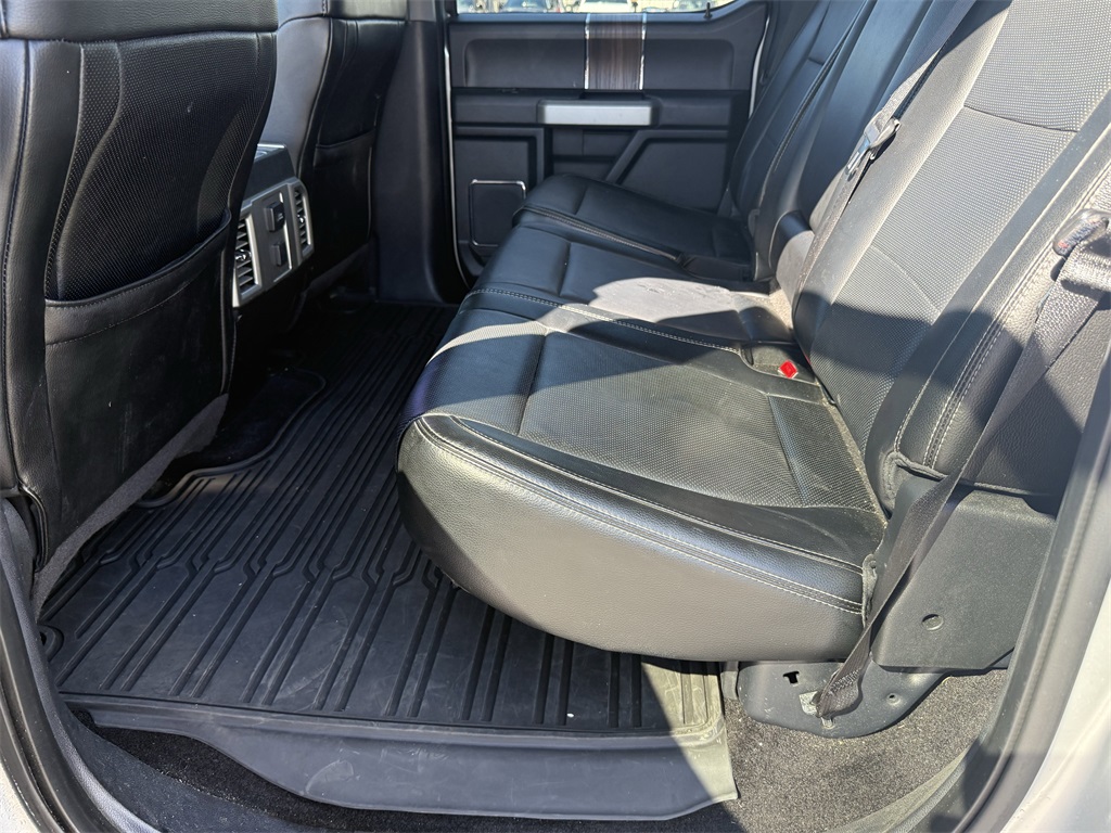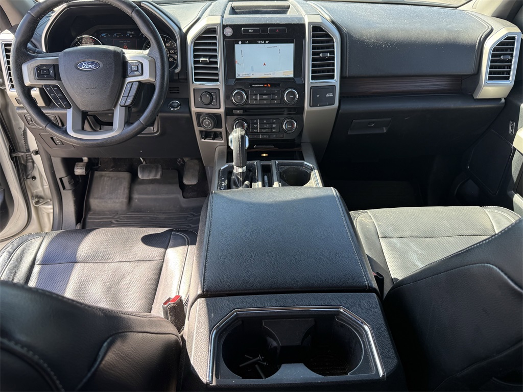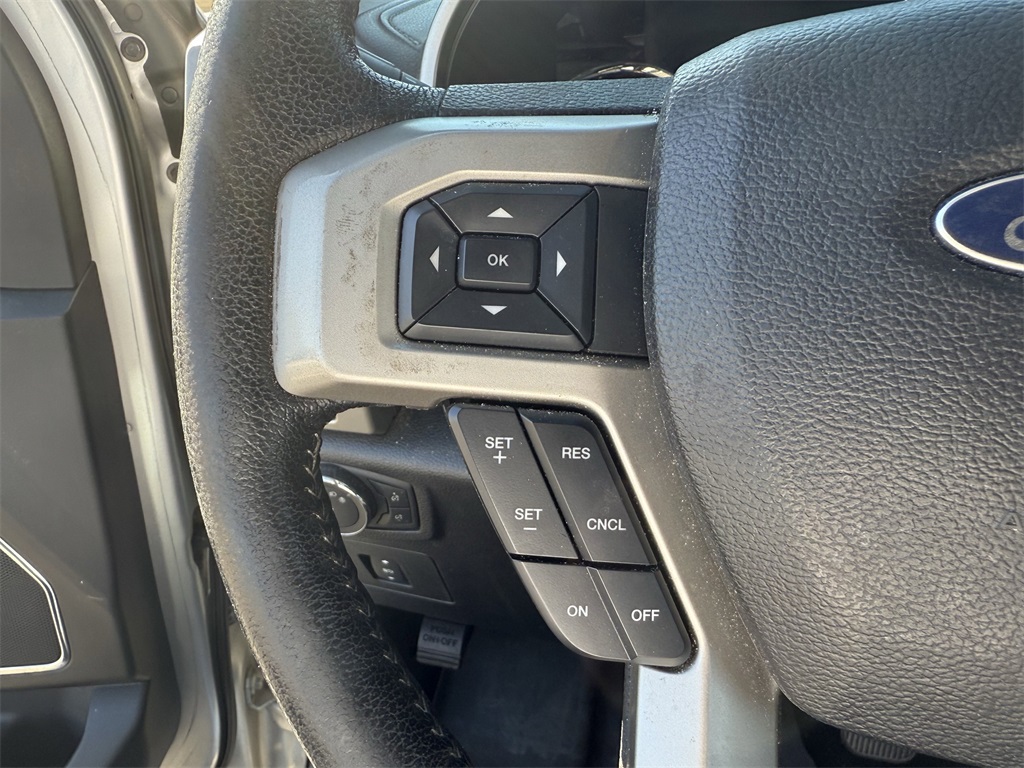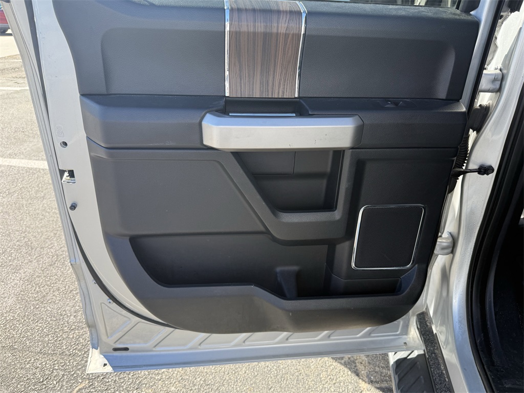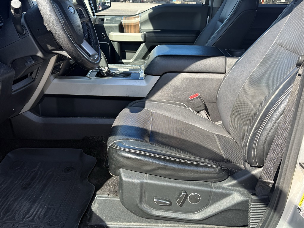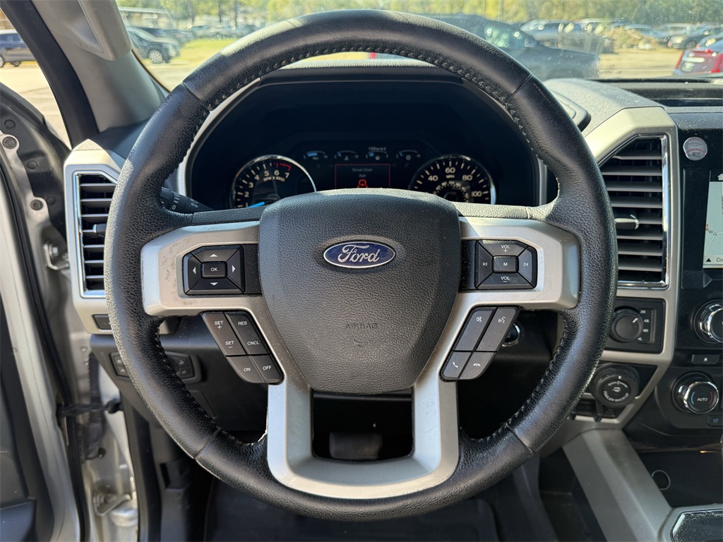 er), GVWR: 6,500 lbs Payload Package, Lariat Chrome Appearance Package (Chrome 3-Bar Style Grille w/Chrome Surround, Chrome Angular Step Bars, Chrome Door & Tailgate Handles w/Body-Color Bezel, Chrome Skull Caps on Exterior Mirrors, Single-Tip Chrome Exhaust, and Wheels: 18" Chrome-Like PVD), Max Trailer Tow Package (Auxiliary Transmission Oil Cooler, Class IV Trailer Hitch Receiver, Integrated Trailer Brake Controller, Pro Trailer Backup Assist, and Upgraded Front Stabilizer Bar), 4WD, 18" Machined-Aluminum Wheels, 4-Wheel Disc Brakes, 7 Speakers, ABS brakes, Adjustable pedals, Air Conditioning, Alloy wheels, AM/FM radio: SiriusXM, Auto-dimming door mirrors, Auto-dimming Rear-View mirror, Automatic temperature control, Brake assist, Bumpers: chrome, CD player, Compass, Delay-off headlights, Driver door bin, Driver vanity mirror, Dual front impact airbags, Dual front side impact airbags, Electronic Stability Control, Extended Range 36 Gallon Fuel Tank, Exterior Parking Camera Rear, Front anti-roll bar, Front Center Armrest w/Storage, Front dual zone A/C, Front fog lights, Front License Plate Bracket, Front reading lights, Front wheel independent suspension, Fully automatic headlights, Heated door mirrors, Heated front seats, Illuminated entry, Leather-Trimmed 40/20/40 Front Seat, Low tire pressure warning, Memory seat, Occupant sensing airbag, Outside temperature display, Overhead airbag, Overhead console, Panic alarm, Passenger door bin, Passenger vanity mirror, Pedal memory, Power door mirrors, Power driver seat, Power passenger seat, Power steering, Power windows, Radio data system, Radio: Single-CD w/SiriusXM Satellite, Rear reading lights, Rear seat center armrest, Rear step bumper, Rear window defroster, Remote keyless entry, Security system, Speed control, Speed-sensing steering, Split folding rear seat, Steering wheel mounted audio controls, SYNC 3, Tachometer, Tailgate Step w/Tailgate Lift Assist, Telescoping steering wheel, Tilt steering wheel, Traction control, Trip computer, Turn signal indicator mirrors, Variably intermittent wipers, Ventilated front seats, Voice-Activated Navigation, Voltmeter, and Wheels: 20" Chrome-Like PVD.