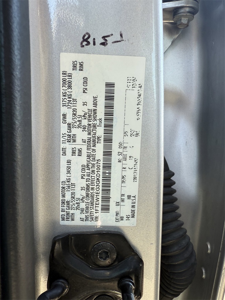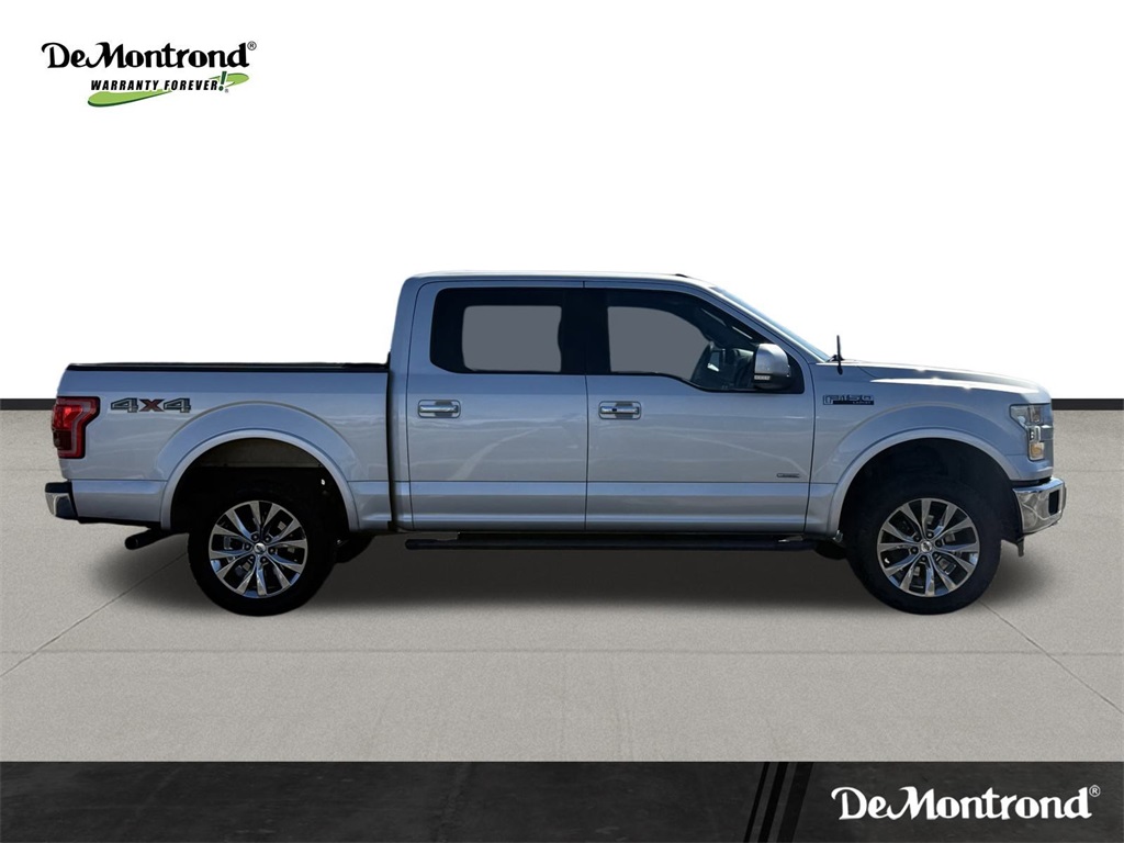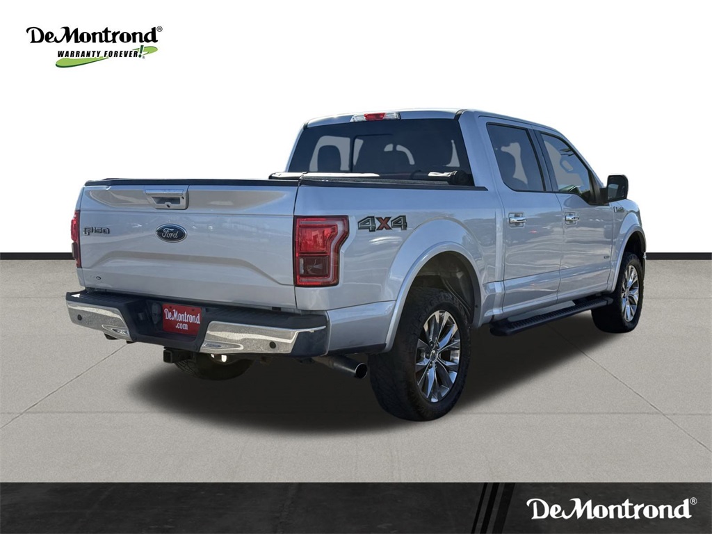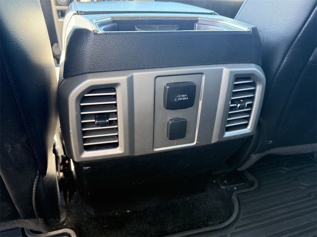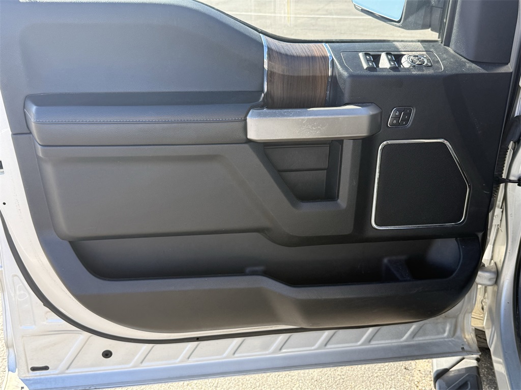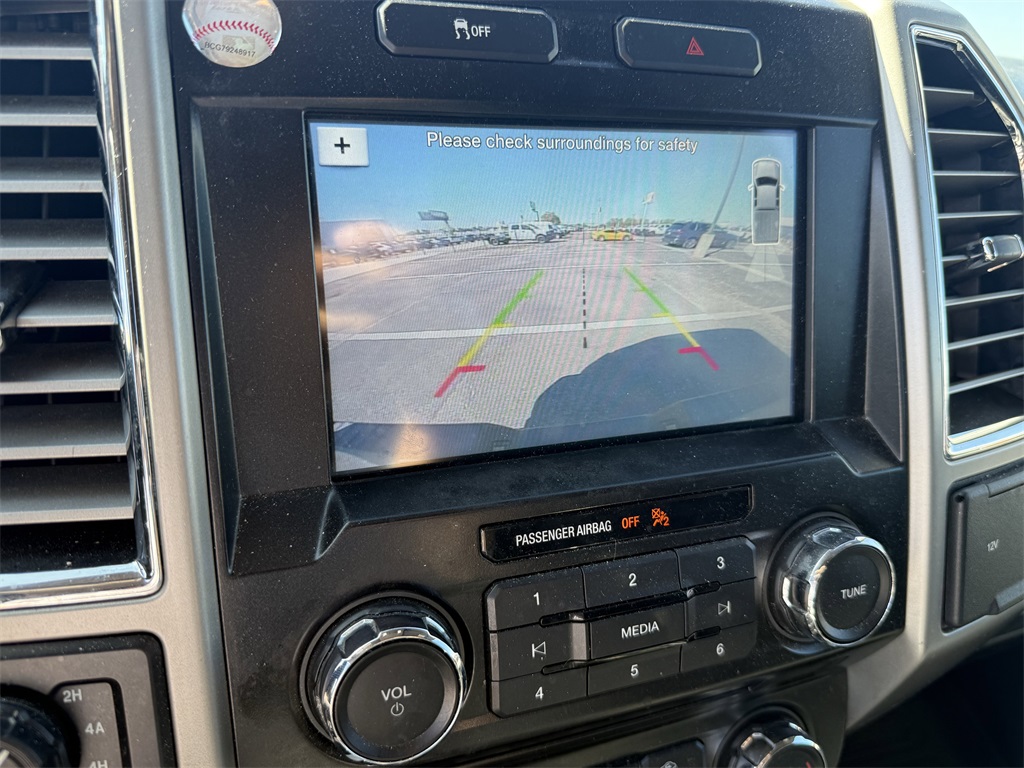 er), GVWR: 6,500 lbs Payload Package, Lariat Chrome Appearance Package (Chrome 3-Bar Style Grille w/Chrome Surround, Chrome Angular Step Bars, Chrome Door & Tailgate Handles w/Body-Color Bezel, Chrome Skull Caps on Exterior Mirrors, Single-Tip Chrome Exhaust, and Wheels: 18" Chrome-Like PVD), Max Trailer Tow Package (Auxiliary Transmission Oil Cooler, Class IV Trailer Hitch Receiver, Integrated Trailer Brake Controller, Pro Trailer Backup Assist, and Upgraded Front Stabilizer Bar), 4WD, 18" Machined-Aluminum Wheels, 4-Wheel Disc Brakes, 7 Speakers, ABS brakes, Adjustable pedals, Air Conditioning, Alloy wheels, AM/FM radio: SiriusXM, Auto-dimming door mirrors, Auto-dimming Rear-View mirror, Automatic temperature control, Brake assist, Bumpers: chrome, CD player, Compass, Delay-off headlights, Driver door bin, Driver vanity mirror, Dual front impact airbags, Dual front side impact airbags, Electronic Stability Control, Extended Range 36 Gallon Fuel Tank, Exterior Parking Camera Rear, Front anti-roll bar, Front Center Armrest w/Storage, Front dual zone A/C, Front fog lights, Front License Plate Bracket, Front reading lights, Front wheel independent suspension, Fully automatic headlights, Heated door mirrors, Heated front seats, Illuminated entry, Leather-Trimmed 40/20/40 Front Seat, Low tire pressure warning, Memory seat, Occupant sensing airbag, Outside temperature display, Overhead airbag, Overhead console, Panic alarm, Passenger door bin, Passenger vanity mirror, Pedal memory, Power door mirrors, Power driver seat, Power passenger seat, Power steering, Power windows, Radio data system, Radio: Single-CD w/SiriusXM Satellite, Rear reading lights, Rear seat center armrest, Rear step bumper, Rear window defroster, Remote keyless entry, Security system, Speed control, Speed-sensing steering, Split folding rear seat, Steering wheel mounted audio controls, SYNC 3, Tachometer, Tailgate Step w/Tailgate Lift Assist, Telescoping steering wheel, Tilt steering wheel, Traction control, Trip computer, Turn signal indicator mirrors, Variably intermittent wipers, Ventilated front seats, Voice-Activated Navigation, Voltmeter, and Wheels: 20" Chrome-Like PVD.