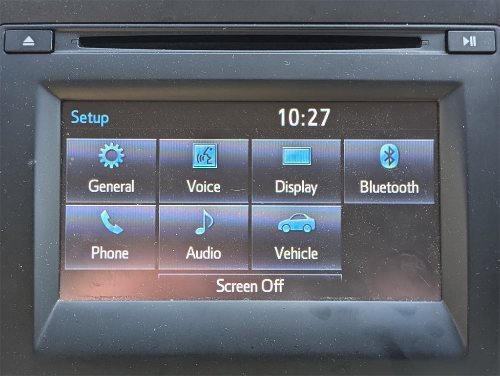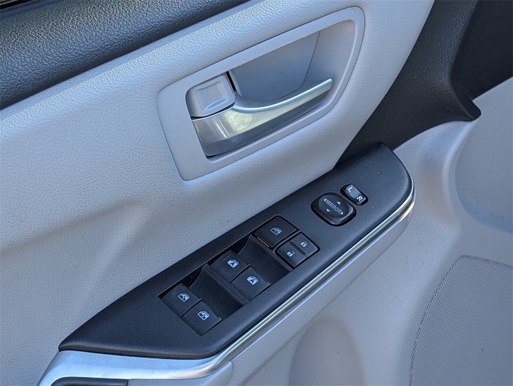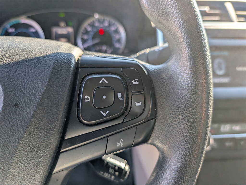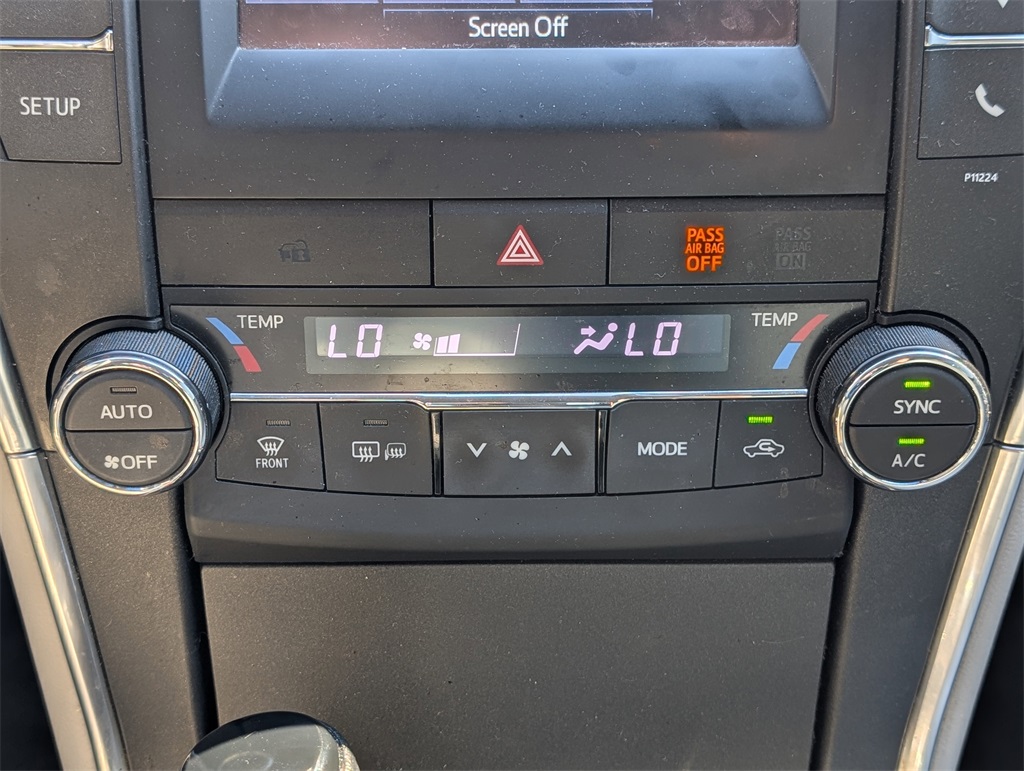 , Dual front side impact airbags, Electronic Stability Control, Exterior Parking Camera Rear, Four wheel independent suspension, Front anti-roll bar, Front Bucket Seats, Front Center Armrest, Front dual zone A/C, Front reading lights, Fully automatic headlights, Heated door mirrors, Illuminated entry, Knee airbag, Low tire pressure warning, Occupant sensing airbag, Outside temperature display, Overhead airbag, Overhead console, Panic alarm, Passenger door bin, Passenger vanity mirror, Power door mirrors, Power driver seat, Power steering, Power windows, Radio: Entune Audio Plus, Rear anti-roll bar, Rear seat center armrest, Rear side impact airbag, Rear window defroster, Remote keyless entry, Speed control, Speed-sensing steering, Split folding rear seat, Steering wheel mounted audio controls, Telescoping steering wheel, Tilt steering wheel, Traction control, Trip computer, and Variably intermittent wipers.