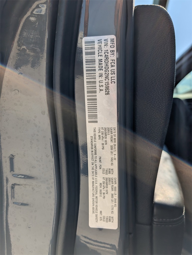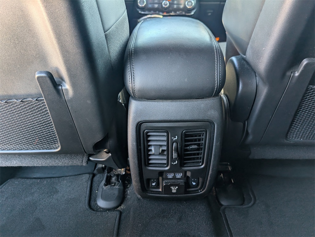 ary Power Outlet, 180 Amp Alternator, Adaptive Cruise Control w/Stop, Advanced Brake Assist, Auto-Dimming Exterior Driver Mirror, Body Color Exterior Mirrors, Bright Cargo Area Scuff Pads, Bright Front Door Sill Scuff Pads, Dual Remote USB Port - Charge Only, Exterior Mirrors w/Heating Element, Exterior Mirrors w/Memory, Exterior Mirrors w/Supplemental Signals, Full Speed Forward Collision Warning Plus, Heated Second Row Seats, Lane Departure Warning Plus, Leather Suede Bucket Seats, Power 6x9 Multi-Function Foldaway Mirrors, Power 8-Way Driver Memory 6-Way Passenger Seats, Power Driver/Passenger 4-Way Lumbar Adjust, Premium Door Trim Panel, Radio/Driver Seat/Mirrors Memory, Rain Sensitive Windshield Wipers, Security Alarm, Sun Visors w/Illuminated Vanity Mirrors, Tungsten Accent Stitching, and Universal Garage Door Opener), 3.27 Rear Axle Ratio, 3rd row seats: split-bench, 4-Wheel Disc Brakes, 6 Speakers, ABS brakes, Air Conditioning, Alloy wheels, AM/FM radio: SiriusXM, Anti-whiplash front head restraints, Apple CarPlay, Apple CarPlay/Android Auto, Auto-dimming Rear-View mirror, Auto-leveling suspension, Automatic temperature control, Brake assist, Bumpers: body-color, Cloth Bucket Seats w/Shift Insert, Compass, Delay-off headlights, Driver door bin, Driver vanity mirror, Dual front impact airbags, Dual front side impact airbags, Electronic Stability Control, For More Info, Call 800-643-2112, Four wheel independent suspension, Front anti-roll bar, Front Bucket Seats, Front Center Armrest w/Storage, Front dual zone A/C, Front fog lights, Front reading lights, Fully automatic headlights, Google Android Auto, GPS Antenna Input, Heated door mirrors, Heated front seats, Heated steering wheel, Illuminated entry, Integrated Center Stack Radio, Integrated Voice Command w/Bluetooth, Knee airbag, Leather steering wheel, Low tire pressure warning, Occupant sensing airbag, Outside temperature display, Overhead airbag, Overhead console, Panic alarm, ParkView Rear Back-Up Camera, Passenger door bin, Passenger vanity mirror, Power door mirrors, Power driver seat, Power Liftgate, Power steering, Power windows, Radio data system, Radio: Uconnect 4 w/8.4" Display, Rear air conditioning, Rear anti-roll bar, Rear Load Leveling Suspension, Rear reading lights, Rear seat center armrest, Rear window defroster, Rear window wiper, Remote keyless entry, SiriusXM Radio Service, SiriusXM Satellite Radio, Speed control, Speed-sensing steering, Speed-Sensitive Wipers, Split folding rear seat, Spoiler, Steering wheel mounted audio controls, Tachometer, Telescoping steering wheel, Tilt steering wheel, Traction control, Trip computer, USB Host Flip, Variably intermittent wipers, Voltmeter, and Wheels: 20" x 8.0" Fine Silver.