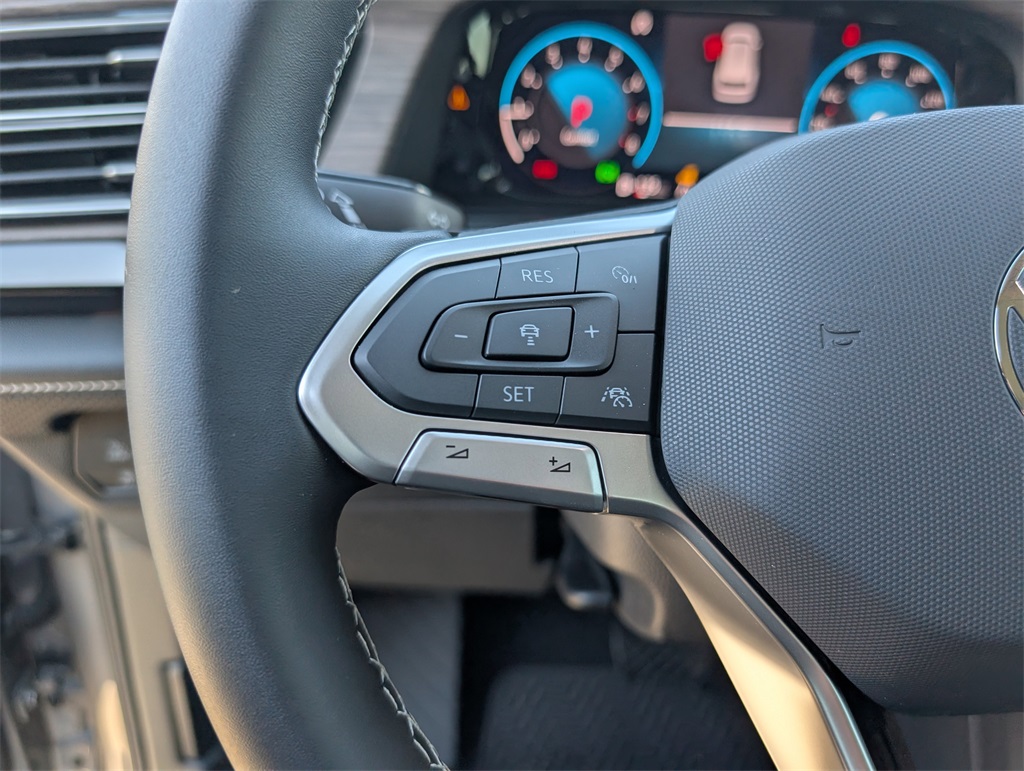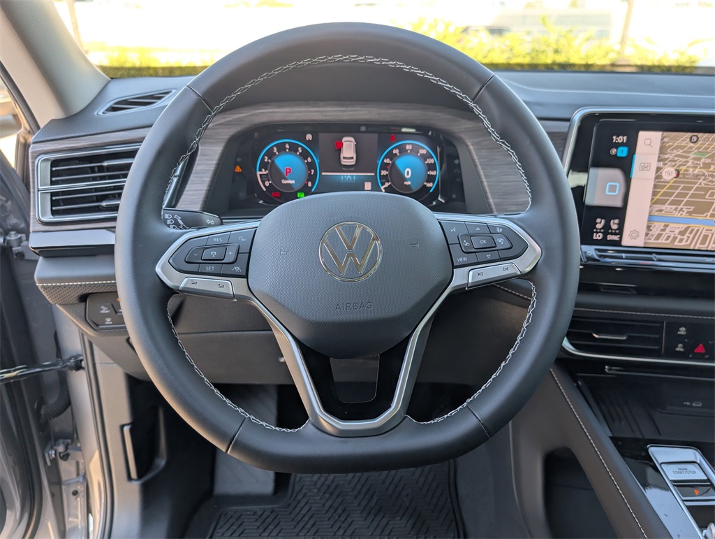 l, Brake assist, Bumpers: body-color, Compass, Delay-off headlights, Driver door bin, Driver vanity mirror, Dual front impact airbags, Dual front side impact airbags, Electronic Stability Control, Emergency communication system: VW Car-Net Safe & Secure 5-year, Exterior Parking Camera Rear, Four wheel independent suspension, four-wheel independent suspension, Front anti-roll bar, Front Bucket Seats, Front Center Armrest, Front dual zone A/C, Front fog lights, Front reading lights, Fully automatic headlights, Heads-Up Display, heated and Actively ventilated front bucket seats, Heated door mirrors, Heated front seats, Heated rear seats, Heated steering wheel, Illuminated entry, Low tire pressure warning, Memory seat, MIB3 discover media with navigation, Navigation System, Occupant sensing airbag, Outside temperature display, Overhead airbag, Overhead console, Panic alarm, Passenger door bin, Passenger vanity mirror, perforated vienna leather seating surfaces, Power door mirrors, Power driver seat, Power Liftgate, Power moonroof: Panoramic, Power passenger seat, Power steering, Power windows, Radio data system, Rain sensing wipers, Rear air conditioning, Rear anti-roll bar, Rear reading lights, Rear seat center armrest, Rear window defroster, Rear window wiper, Remote keyless entry, Security system, Speed control, Speed-sensing steering, Split folding rear seat, Spoiler, Steering wheel mounted audio controls, Tachometer, Telescoping steering wheel, Tilt steering wheel, Traction control, Trip computer, Turn signal indicator mirrors, Variably intermittent wipers, and Ventilated front seats. 2025 Volkswagen Atlas 2.0T SEL 4D Sport Utility Silver Price includes: $3500 - Retail Customer Bonus. Exp. 01/05/2026