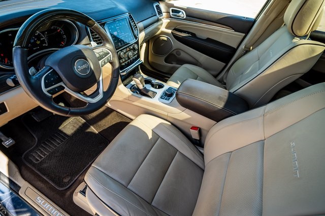 Grand Cherokee Summit, the very pinnacle of the lineup arrives, with premium luxuries in place and primed to deliver a supreme driving experience. It arrives with a full complement of comforts and technology, including an interior saturated with premium leather trim, from the heated first- and second-row seats to the instrument panel and armrests adorned with real open-pore wood inserts. A Uconnect 5C NAV with a large 8.4-inch full-color touchscreen and a Harman Kardon Premium Audio System with 19 speakers keep you connected and entertained.