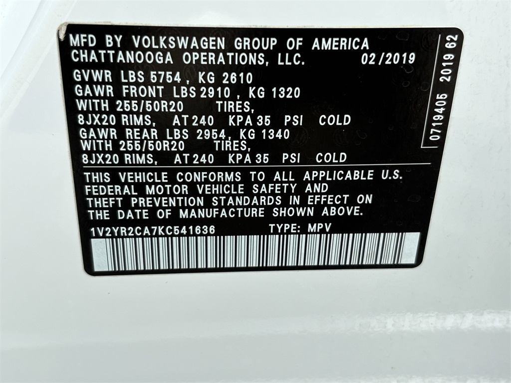 1V2YR2CA7KC541636Stock #