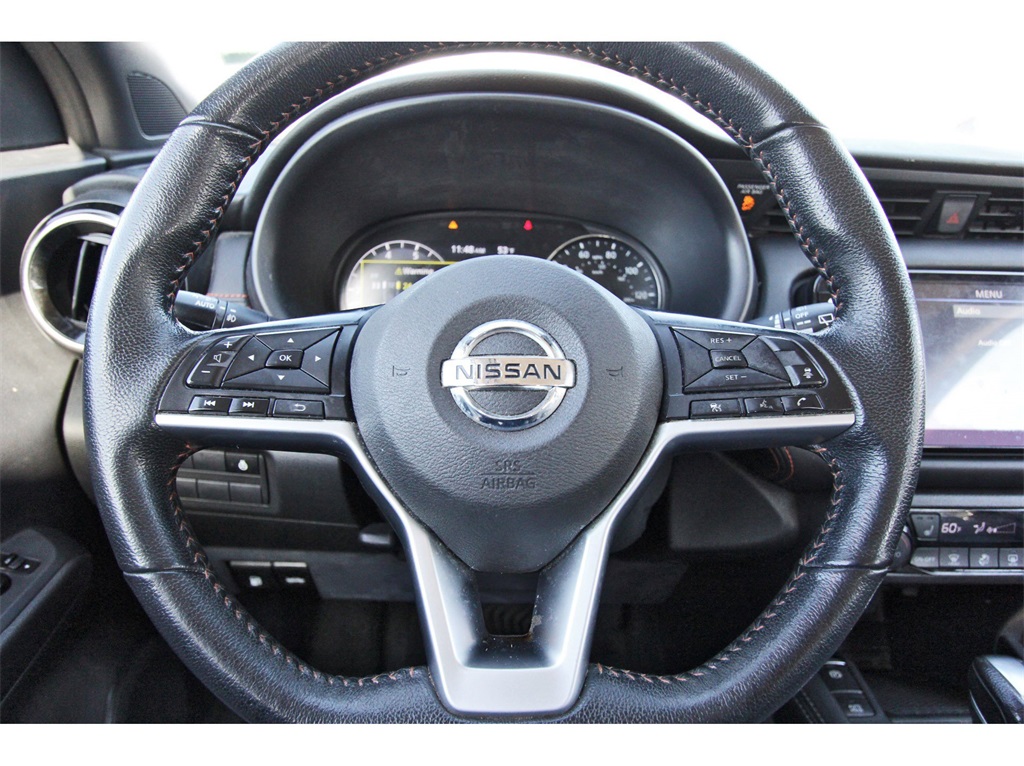 Central Houston Nissan is proud to present you with another True Market Priced Pre-Owned Vehicle. This 2021 Nissan Kicks SR is loaded with the following Factory Options: Exterior Package (Crossbars and Exhaust Finisher), SR Premium Package (Bose Personal Plus Audio System, Heated Front Seats, Heated Steering Wheel, Prima-Tex Appointed Seat Trim, Security System, and Tonneau Cover), Technology Package (NissanConnect Services), 3.927 Axle Ratio, 4-Wheel Disc Brakes, 6 Speakers, ABS brakes, Air Con
