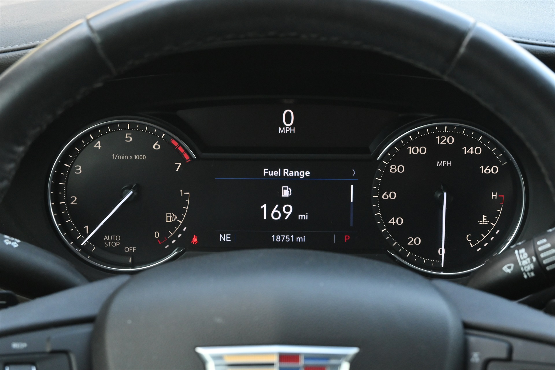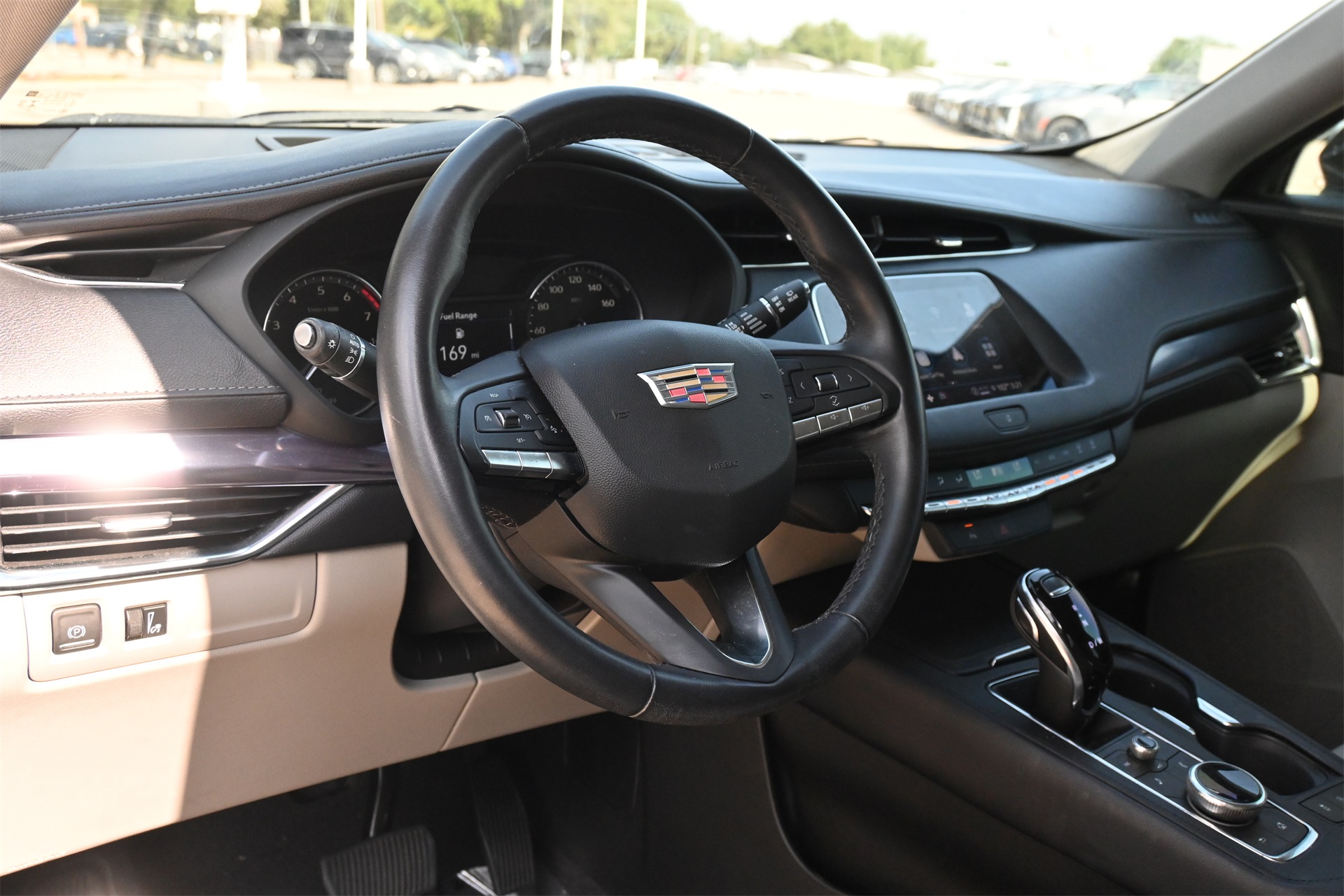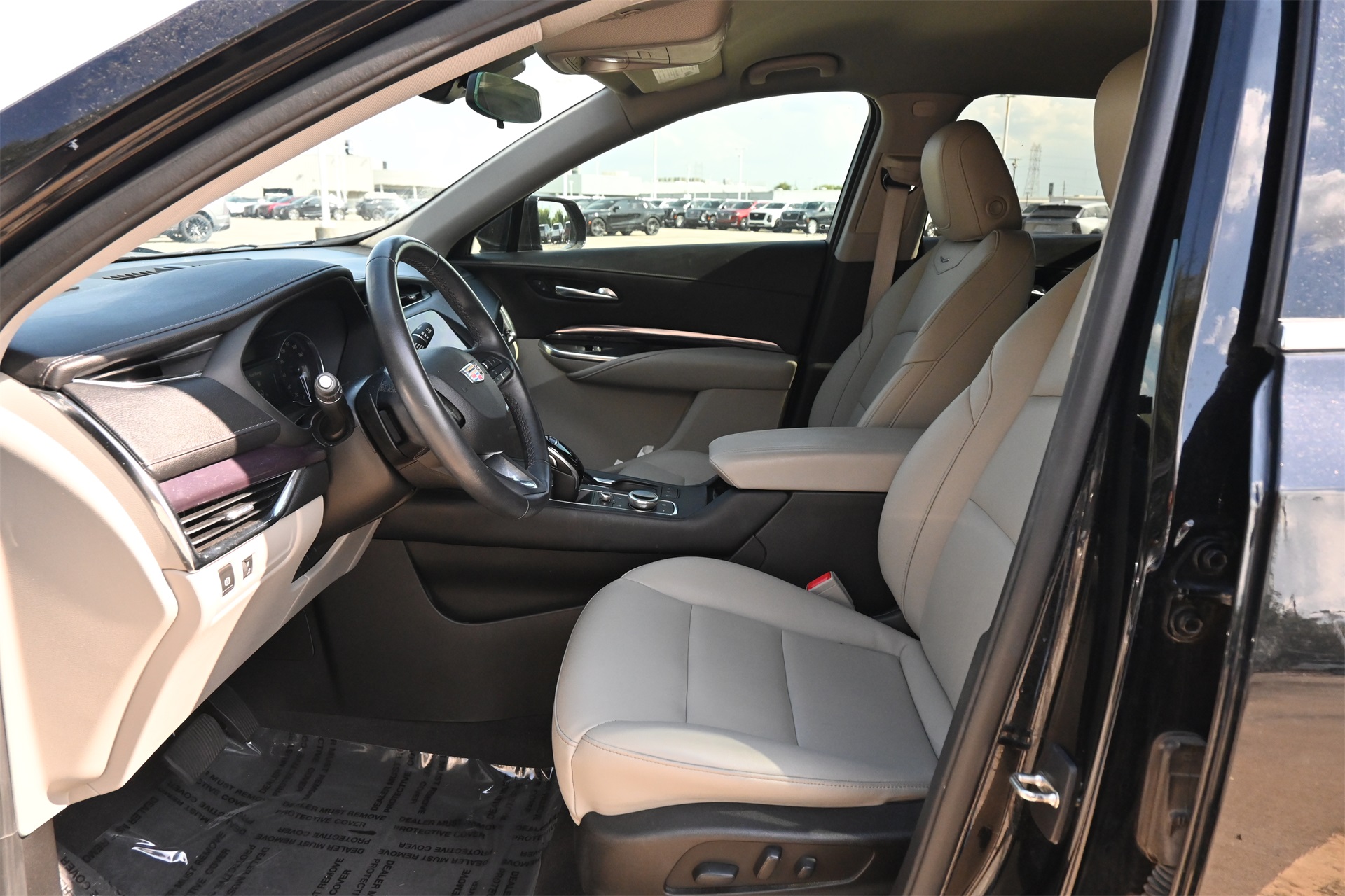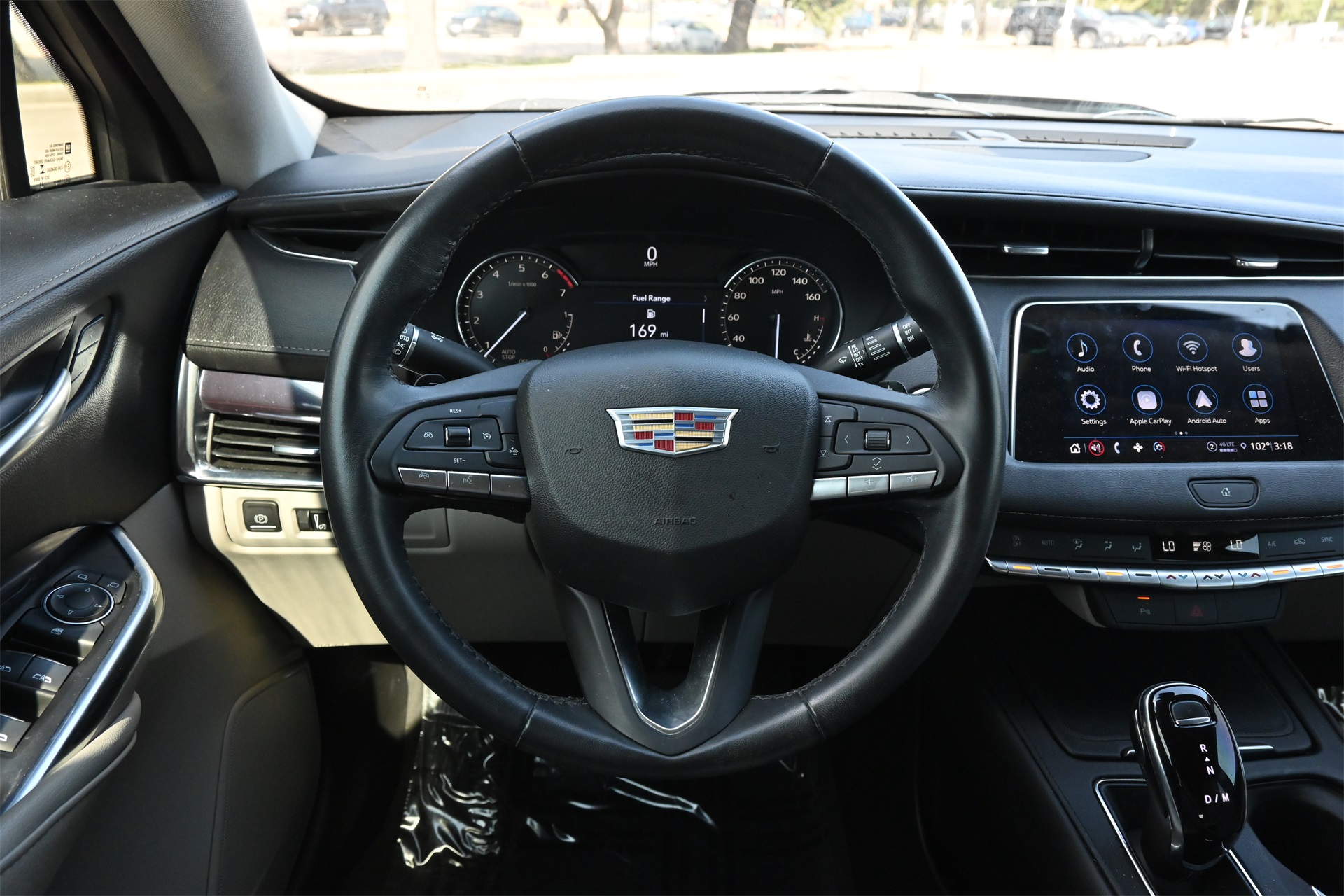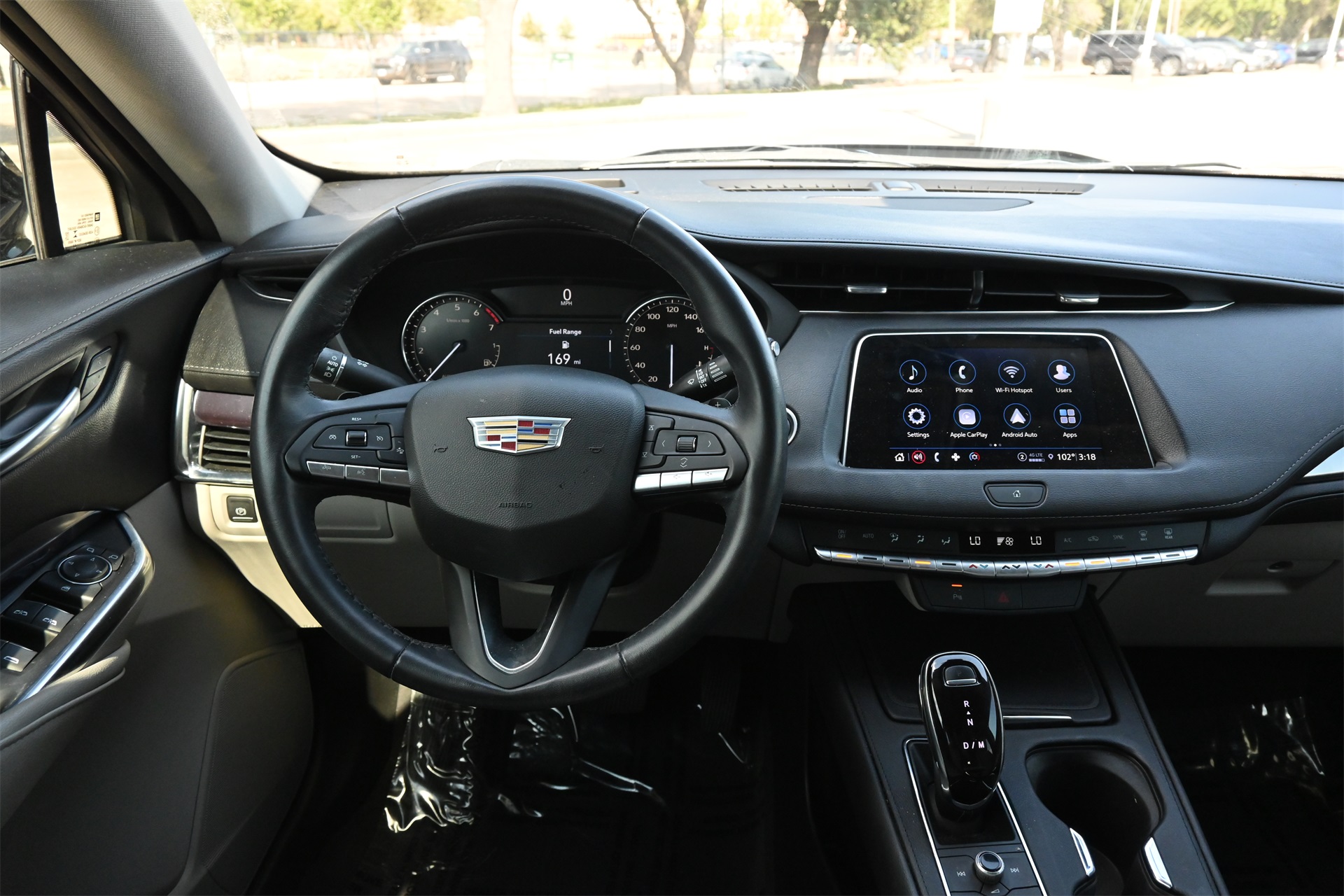 roid Auto, Automatic temperature control, Brake assist, Bumpers: body-color, Compass, Delay-off headlights, Driver door bin, Driver vanity mirror, Dual front impact airbags, Dual front side impact airbags, Electronic Stability Control, Emergency communication system: OnStar and Cadillac connected services capable, Four wheel independent suspension, Front anti-roll bar, Front Bucket Seats, Front Center Armrest, Front dual zone A/C, Front License Plate Bracket, Front reading lights, Fully automatic headlights, Garage door transmitter, HD Radio, Heated door mirrors, Illuminated entry, Inteluxe Seats, Knee airbag, Leather steering wheel, Low tire pressure warning, Not Equipped w/Rear Park Assist, Occupant sensing airbag, Outside temperature display, Overhead airbag, Overhead console, Panic alarm, Passenger door bin, Passenger vanity mirror, Power door mirrors, Power driver seat, Power Liftgate, Power passenger seat, Power steering, Power windows, Radio data system, Radio: Cadillac User Experience AM/FM Stereo, Rear anti-roll bar, Rear reading lights, Rear seat center armrest, Rear window defroster, Rear window wiper, Remote keyless entry, Road Emergency Tool Kit, Security system, SiriusXM w/360L, Speed control, Speed-sensing steering, Split folding rear seat, Spoiler, Standard Suspension, Steering wheel mounted audio controls, Tachometer, Telescoping steering wheel, Tilt steering wheel, Traction control, Trip computer, Variably intermittent wipers, Voltmeter, Wheels: 18" 10-Spoke Bright Silver Finish Alloy, and Wireless Apple CarPlay/Wireless Android Auto. Stellar Black Metallic FWD 9-Speed Automatic 2.0L I4 Turbocharged CARFAX 1-Owner, Clean CARFAX!, Local Trade, Low Miles, Bluetooth, Apple Carplay / Android Auto.