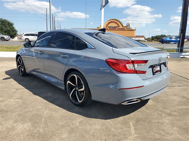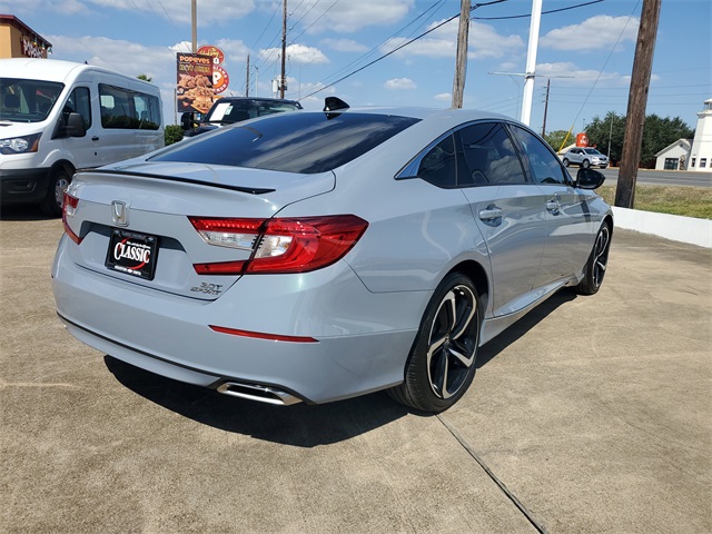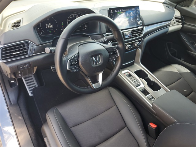 Sonic Gray Pearl 2022 Honda Accord Sport 2.0T FWD 10-Speed Automatic I4 DOHC 16V Turbocharged Black w/Perforated Leather Seat Trim.