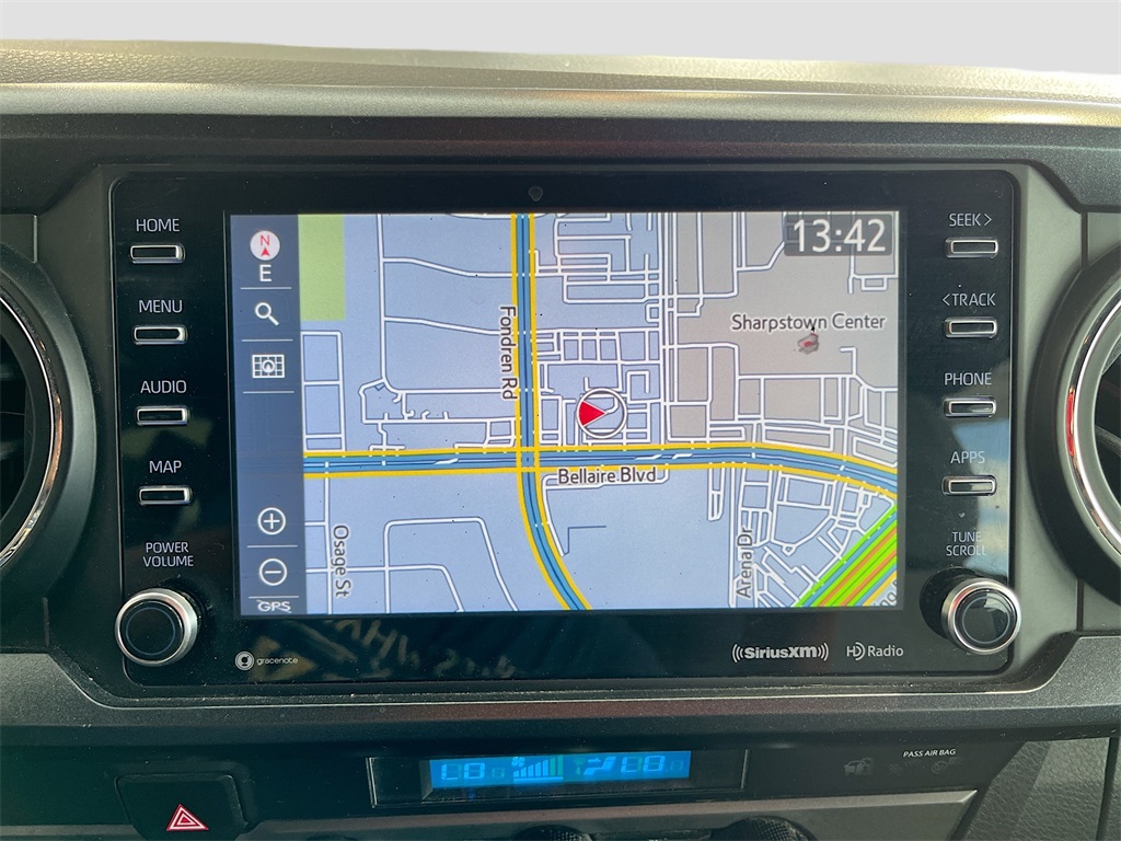 remium features like a Smart Key system with push-button start, a power sliding rear window, and an integrated navigation system. Stay connected with Apple CarPlay and Android Auto, and enjoy the convenience of a Qi-compatible wireless charger and a 120V deck-mounted AC power outlet. This 2023 Toyota Tacoma comes with a branded title, reflecting AutoSavvy's commitment to providing high-quality vehicles at exceptional value. As a Savvy Certified vehicle, it includes the reassurance of a 4-month/4,500-mile warranty, offering peace of mind with your purchase. Each vehicle at AutoSavvy undergoes a comprehensive inspection to ensure it meets the highest standards of quality and reliability. Visit AutoSavvy Houston Northwest today to test drive this exceptional Toyota Tacoma and join the community of savvy buyers who trust AutoSavvy for their automotive needs. Experience the perfect blend of power, technology, and off-road capability in this outstanding pickup.