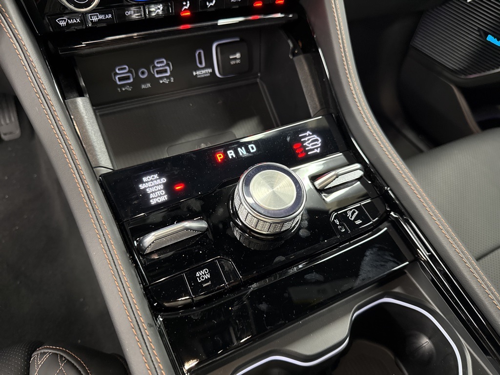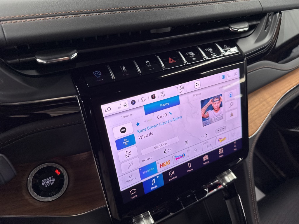 Advanced Protech Group IV (Heads-Up Display, Night Vision/Pedestrian-Animal Detection, Rearview Autodim Digital Display Mirror, and Windshield Wiper De-Icer), High Altitude Package (Gloss Black Exterior Accents, Neutral Gray Exterior Accents, Painted Door Cladding, and Wheels: 21" x 9.0" Black Painted Aluminum), Luxury Tech Group V (2nd-Row Manual Window Shades and Wireless Charging Pad), MOPAR Finishing Package (MOPAR Front Splash Guards, MOPAR Paint Protection Film, and MOPAR Rear Splash Guards w/Jeep Logo), Quick Order Package 27U Summit Reserve (Deluxe Headliner, Front Passenger Interactive Display, Palermo Leather Door Trim, Palermo Leather Seats, Summit Reserve, Summit Reserve Badge, Ventilated Rear Seats, and Wheels: 21" x 9" Machined Face/Painted Aluminum), Two Tone Paint Group, 2.0L I4 DOHC, 4WD, 19 Speakers, 3.70 Rear Axle Ratio, 4-Wheel Disc Brakes, ABS brakes, Adaptive suspension, Air Conditioning, Alloy wheels, AM/FM radio: SiriusXM with 360L, Anti-whiplash front head restraints, Audio memory, Auto High-beam Headlights, Auto-dimming door mirrors, Auto-dimming Rear-View mirror, Auto-leveling suspension, Automatic temperature control, Brake assist, Bumpers: body-color, Compass, Delay-off headlights, Driver door bin, Driver vanity mirror, Dual front impact airbags, Dual front side impact airbags, Electronic Stability Control, Four wheel independent suspension, Front anti-roll bar, Front Bucket Seats, Front Center Armrest w/Storage, Front dual zone A/C, Front fog lights, Front License Plate Bracket, Front reading lights, Fully automatic headlights, Garage door transmitter, Genuine wood dashboard insert, Genuine wood door panel insert, Heated door mirrors, Heated front seats, Heated rear seats, Heated steering wheel, Heavy Duty Suspension, Illuminated entry, Knee airbag, Leather steering wheel, Low tire pressure warning, Memory seat, Model Year Tracking, Nappa Leather Seats, Navigation System, Occupant sensing airbag, Outside temperature display, Overhead airbag, Overhead console, Panic alarm, Passenger door bin, Passenger vanity mirror, Power door mirrors, Power driver seat, Power Liftgate, Power moonroof, Power passenger seat, Power steering, Power windows, Radio data system, Radio: Uconnect 5 Nav w/10.1" Display, Rain sensing wipers, Rear air conditioning, Rear anti-roll bar, Rear dual zone A/C, Rear reading lights, Rear seat center armrest, Rear window defroster, Rear window wiper, Remote keyless entry, Security system, Speed control, Speed-Sensitive Wipers, Split folding rear seat, Spoiler, Steering wheel memory, Steering wheel mounted audio controls, Tachometer, Telescoping steering wheel, Tilt steering wheel, Traction control, Trip computer, Turn signal indicator mirrors, Variably intermittent wipers, Ventilated front seats, Voltmeter, and Wheels: 20" x 8.5" Fully Painted Aluminum Silver.