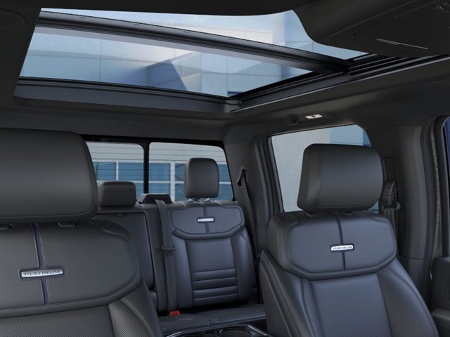 pact airbags, Dual front side impact airbags, Electronic Locking w/3.55 Axle Ratio, Electronic Stability Control, Emergency communication system: SYNC 4 911 Assist, Front anti-roll bar, Front Bucket Seats, Front Center Armrest, Front dual zone A/C, Front fog lights, Front reading lights, Front wheel independent suspension, Fully automatic headlights, Garage door transmitter, Heated door mirrors, Heated front seats, Heated rear seats, Heated steering wheel, Illuminated entry, Leather steering wheel, Low tire pressure warning, Memory seat, Navigation system: Connected Navigation, Occupant sensing airbag, Outside temperature display, Overhead airbag, Overhead console, Panic alarm, Passenger door bin, Passenger vanity mirror, Pedal memory, Power door mirrors, Power driver seat, Power passenger seat, Power steering, Power windows, Radio data system, Radio: B&O Sound System by Bang & Olufsen, Rain sensing wipers, Rear reading lights, Rear seat center armrest, Rear step bumper, Rear window defroster, Remote keyless entry, Security system, Speed control, Split folding rear seat, Steering wheel memory, Steering wheel mounted audio controls, SYNC 4 w/Enhanced Voice Recognition, Tachometer, Telescoping steering wheel, Tilt steering wheel, Traction control, Trip computer, Turn signal indicator mirrors, Unique Multi-Contour Leather Bucket Seats, Variably intermittent wipers, Ventilated front seats, Voltmeter, and Wheels: 20" Painted Gloss Ebony Black.