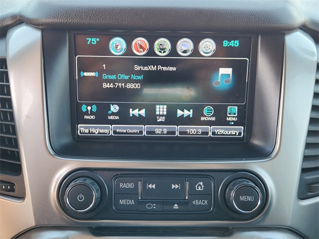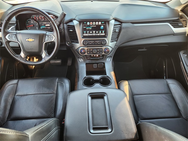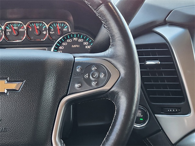 , LEATHER INTERIOR, 2ND ROW CAPTAINS CHAIRS, 3RD ROW SEATING, RUNNING BOARDS, TOW PKG, Black Leather, 1st & 2nd Row Color-Keyed Carpeted Floor Mats, 2nd Row 60/40 Split-Folding Manual Bench, 2nd Row Pwr Release 60/40 Split Folding Bench Seat, 3rd Row 60/40 Power Fold Split-Bench, 3rd Row Manual 60/40 Split-Folding Fold Flat Bench, 4-Wheel Antilock Disc Brakes w/Brake Assist, 5 12-Volt Auxiliary Power Outlets, Auto-Dimming Inside Rear-View Mirror, Black Assist Steps, Black Roof Rack Cross Rails, Bluetooth® For Phone, Bose Premium 9-Speaker System, Cargo Net, Color-Keyed Carpeting Floor Covering, Driver Inboard & Front Passenger Airbags, Electronic Cruise Control w/Set & Resume Speed, Enhanced Driver Alert Package (Y86), Extended-Range Remote Keyless Entry, Floor Console, Fog Lamps, Forward Collision Alert, Front & Rear Park Assist, Front Passenger 6-Way Power Seat Adjuster, Hands Free Power Liftgate, HD Radio, Heated 2nd Row Seats, Heated Leather Wrapped Steering Wheel, IntelliBeam Headlamps, Lane Change Alert w/Side Blind Zone Alert, Lane Keep Assist w/Lane Departure Warning, Leather-Wrapped Steering Wheel, License Plate Front Mounting Package, Low Speed Forward Automatic Braking, Memory Settings, OnStar Basic Plan For 5 Years, Passive Entry System, Power Liftgate, Power Sunroof, Power Tilt & Telescopic Steering Column w/Memory, Power-Adjustable Accelerator & Brake Pedals, Power-Folding Heated Outside Mirrors, Preferred Equipment Group 1LT, Premium Smooth Ride Suspension Package, Push Button Keyless Start, Radio: Chevrolet MyLink w/Nav/AM/FM Stereo, Rear Cross-Traffic Alert, Rear Park Assist w/Audible Warning, Rear Seat Blu-Ray/DVD Entertainment System, Remote Vehicle Start, Roof-Mounted Luggage Rack Side Rails, Single-Slot CD/MP3 Player, SiriusXM NavTraffic, SiriusXM Satellite Radio, Sun, Entertainment & Destinations Package, Texas Edition Package, Universal Home Remote.