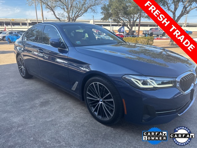 CARFAX One-Owner. Clean CARFAX. Phytonic Blue Metallic 2023 BMW 5 Series 530i RWD 8-Speed Automatic Sport 2.0L 4-Cylinder LOCAL TRADE, CARFAX 1 OWNER, CLEAN CARFAX, NON SMOKER, NAVIGATION, KEYLESS ENTRY, REMOTE START, APPLE CARPLAY, ANDROID AUTO, SIRIUS XM RADIO, AM/FM/HD RADIO, BLUETOOTH HANDS FREE CALLING, FRONT USB CHARGING PORTS, MP3 IPOD COMPATIBLE, AUTO HEADLIGHTS, DAYTIME RUNNING LIGHTS, BLIND SPOT WARNING SYSTEM, REAR TRAFFIC ALERT, LANE DEPARTURE WARNING SYSTEM, POWER ADJUSTABLE DRIVERS