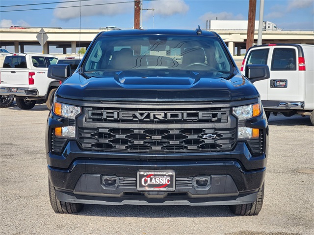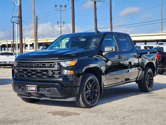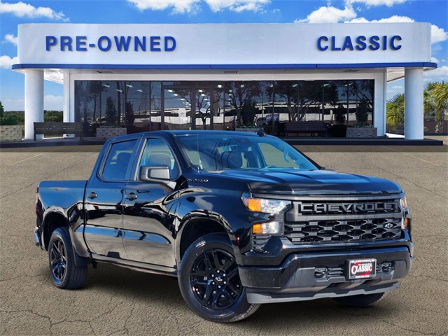 CARFAX One-Owner. Black 2024 Chevrolet Silverado 1500 Custom RWD 8-Speed Automatic 2.7L I4 Turbocharged DOHC 16V LEV3-SULEV30 310hp LOCAL TRADE, CARFAX MINOR DAMAGE, CARFAX 1 OWNER, NON SMOKER, KEYLESS ENTRY, REMOTE START, APPLE CARPLAY, ANDROID AUTO, SIRIUS XM RADIO, ON STAR, AM/FM/HD RADIO, BLUETOOTH HANDS FREE CALLING, FRONT USB CHARGING PORTS, MP3 IPOD COMPATIBLE, AUTO HEADLIGHTS, DAYTIME RUNNING LIGHTS, LANE DEPARTURE WARNING SYSTEM, POWER ADJUSTABLE DRIVERS SEAT, RUNNING BOARDS, TOW PKG, 8