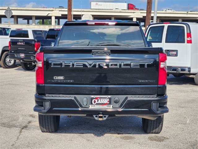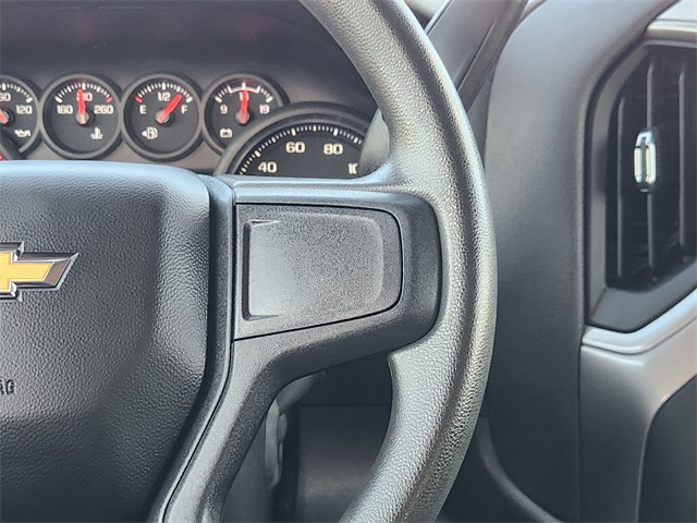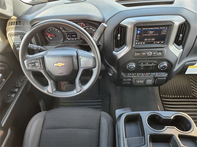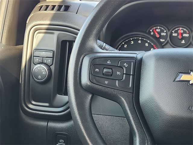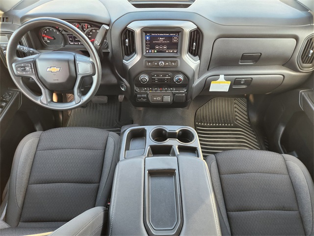 Speed Automatic, Black Cloth, 10-Way Power Driver Seat w/Lumbar, 120-Volt Bed Mounted Power Outlet, 120-Volt Interior Power Outlet, 3.5" Monochromatic Display Driver Info Center, Black Name Plates (LPO), Bluetooth® For Phone, Chevrolet Connected Access Capable, Color-Keyed Carpeting Floor Covering, Custom Convenience Package, Custom Value Package, Dark Essentials Package (LPO), Deep-Tinted Glass, Dual Rear USB Ports (Charge Only), Electric Rear-Window Defogger, Electrical Steering Column Lock, Electronic Cruise Control, EZ Lift Power Lock & Release Tailgate, Front Frame-Mounted Black Recovery Hooks, Front Rubberized Vinyl Floor Mats, HD Rear Vision Camera, High Capacity Suspension Package, Hitch Guidance, LED Cargo Area Lighting, Manual Tilt Wheel Steering Column, OnStar & Chevrolet Connected Services Capable, Power Front Windows w/Driver Express Up/Down, Power Front Windows w/Passenger Express Down, Power Rear Windows w/Express Down, Preferred Equipment Group 1CX, Rear 60/40 Folding Bench Seat (Folds Up), Rear Rubberized-Vinyl Floor Mats, Remote Keyless Entry, Remote Vehicle Starter System, SiriusXM Radio, Standard Tailgate, Theft Deterrent System (Unauthorized Entry), Trailering Package, Wi-Fi Hot Spot Capable.