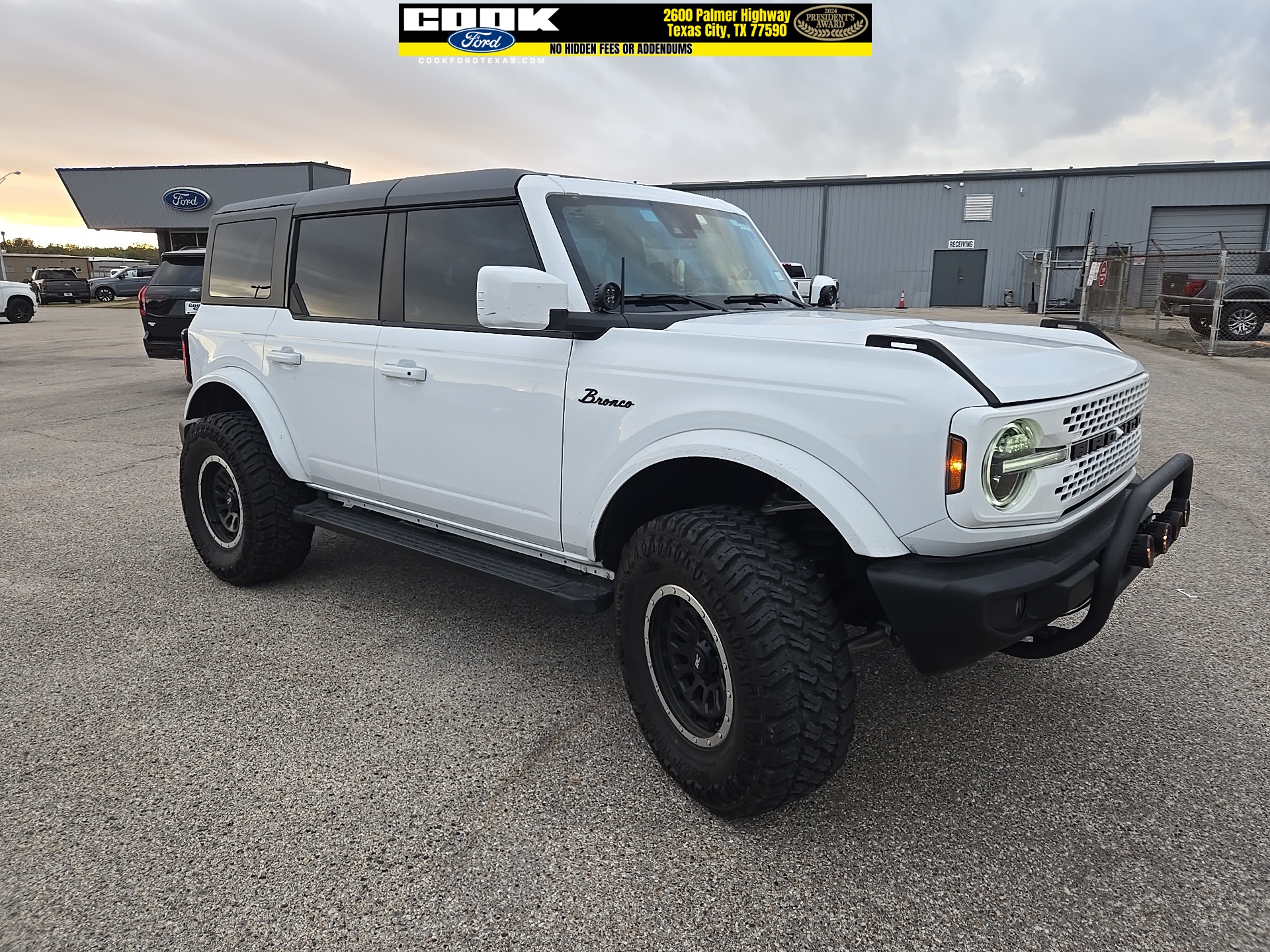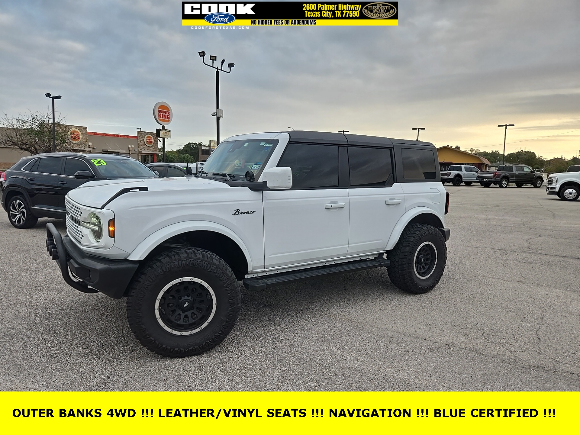 Certified. Oxford White 2024 Ford Bronco Outer Banks 4WD 10-Speed Automatic 2.3L EcoBoost I-4 18" Bright Machined Aluminum Wheels, 3.73 Axle Ratio, Equipment Group 312A Mid Package, Navigation system: Connected Navigation.