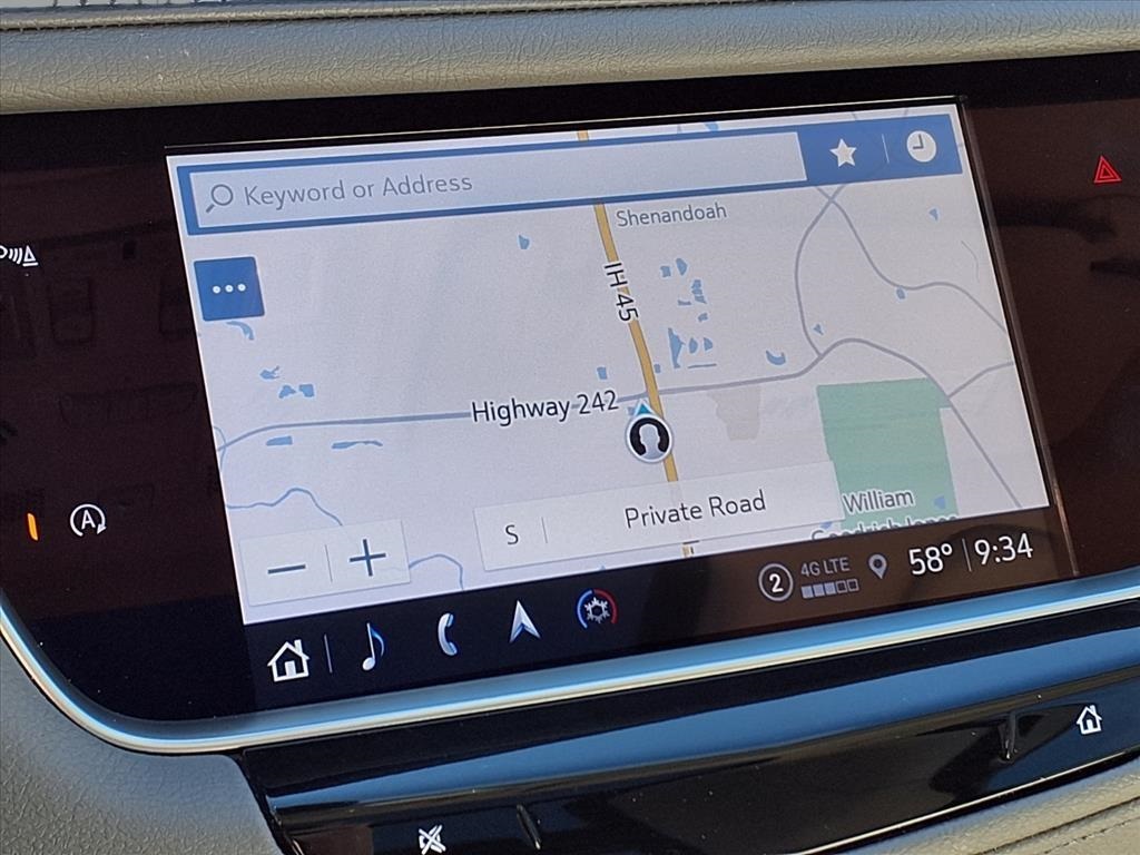 erformance Series 14-Speaker System, SiriusXM w/360L, and Wireless Apple CarPlay/Wireless Android Auto), Cadillac Certified Pre-Owned Certified, 14 Speakers, 155 Amp Alternator, 2-Way Power Driver Lumbar Control Seat Adjuster, 2-Way Power Passenger Lumbar Control Seat Adjuster, 4-Wheel Disc Brakes, 4-Wheel Independent Suspension, ABS brakes, Air Conditioning, Alloy wheels, AM/FM radio: SiriusXM, Audio memory, Auto High-beam Headlights, Auto-dimming door mirrors, Auto-dimming Rear-View mirror, Automatic Stop/Start w/Disable, Automatic temperature control, Bodyside moldings, Brake assist, Bumpers: body-color, Compass, Delay-off headlights, Driver door bin, Driver vanity mirror, Dual front impact airbags, Dual front side impact airbags, Electronic Stability Control, Emergency communication system: OnStar and Cadillac connected services capable, Four wheel independent suspension, Front anti-roll bar, Front Bucket Seats, Front Center Armrest, Front dual zone A/C, Front License Plate Bracket, Front reading lights, Fully automatic headlights, Garage door transmitter, Genuine wood dashboard insert, Genuine wood door panel insert, Heated door mirrors, Heated Driver & Front Passenger Seats, Heated front seats, Heated steering wheel, Illuminated entry, Knee airbag, Leather Seating Surfaces w/Mini Perforated Inserts, Leather steering wheel, Low tire pressure warning, Memory seat, Navigation System, Occupant sensing airbag, Outside temperature display, Overhead airbag, Overhead console, Panic alarm, Passenger door bin, Passenger vanity mirror, Power door mirrors, Power driver seat, Power Liftgate, Power moonroof: UltraView, Power passenger seat, Power steering, Power windows, Radio data system, Rain sensing wipers, Rear anti-roll bar, Rear reading lights, Rear seat center armrest, Rear window defroster, Rear window wiper, Remote keyless entry, Security system, Speed control, Speed-sensing steering, Split folding rear seat, Spoiler, Steering wheel memory, Steering wheel mounted audio controls, Tachometer, Telescoping steering wheel, Tilt steering wheel, Traction control, Trip computer, Turn signal indicator mirrors, Variably intermittent wipers, Voltmeter, and Wheels: 18" 6-Split Spoke Alloy. Recent Arrival! Odometer is 11989 miles below market average! 19/26 City/Highway MPG