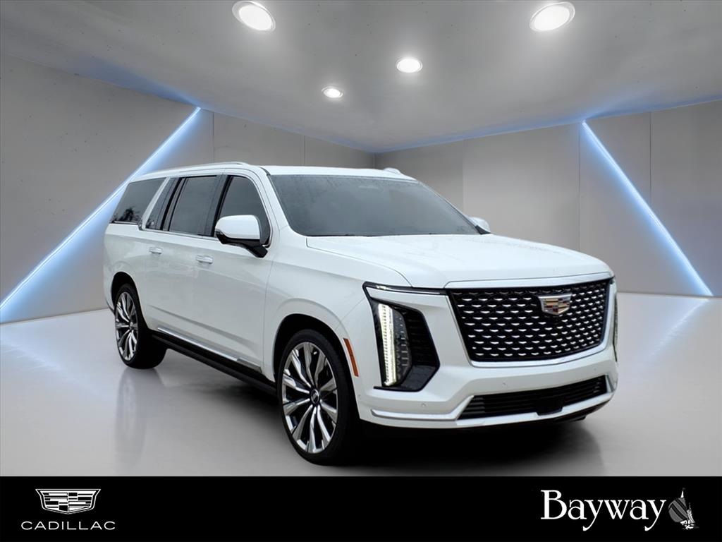 CARFAX One-Owner. Clean CARFAX. Certified. Crystal White Tricoat 2025 Cadillac Escalade ESV Premium 4WD 10-Speed Automatic 6.2L V8 4WD.